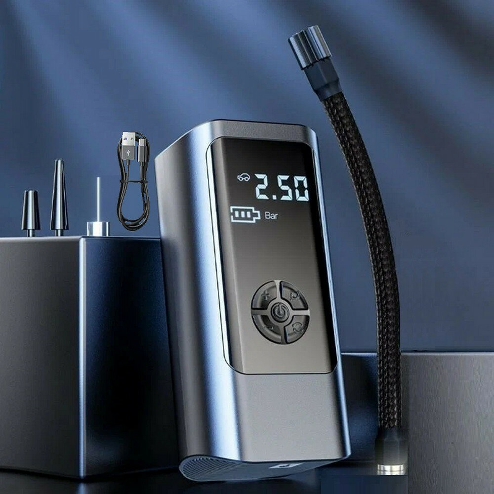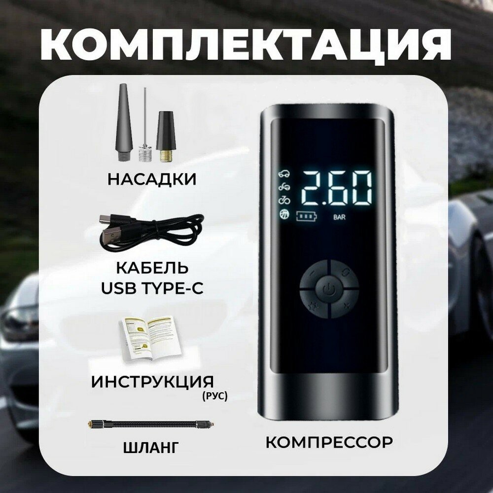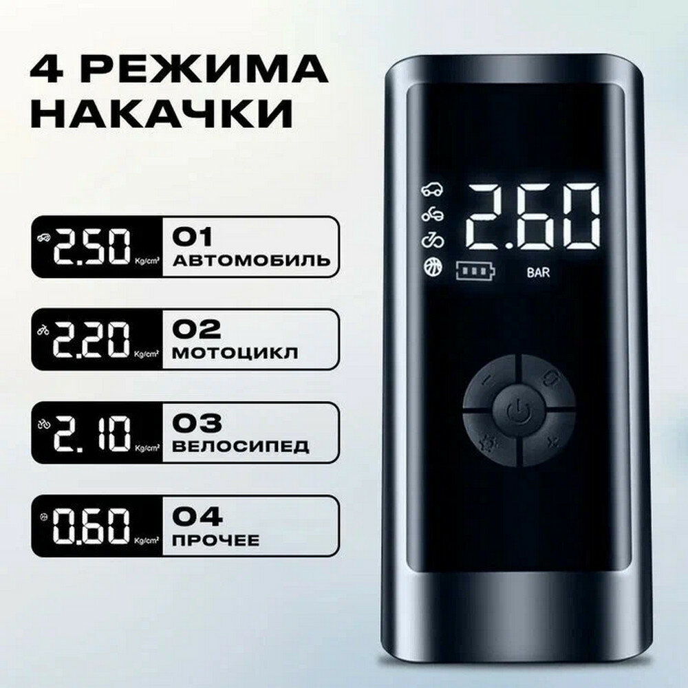 Портативный воздушный универсальный компрессор со встроенным аккумулятором на 6000 мАч и дисплеем для автомобиля, мотоцикла, велосипеда, мяча интересное: