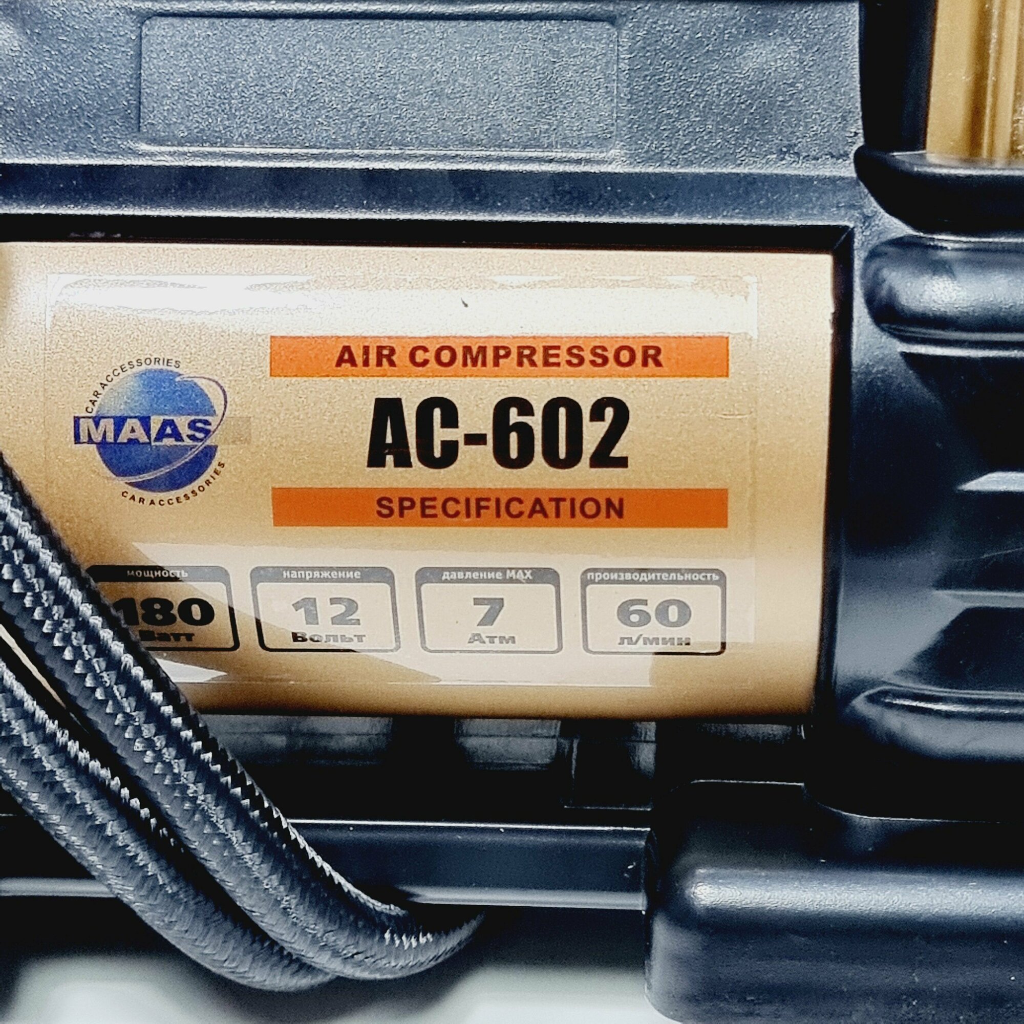 Компрессор автомобильный двухпоршневой с фонарём и переходником от АКБ Maas-602 / 60л.м, 0.8м шланг, 3.0м кабель, 300w интересное: