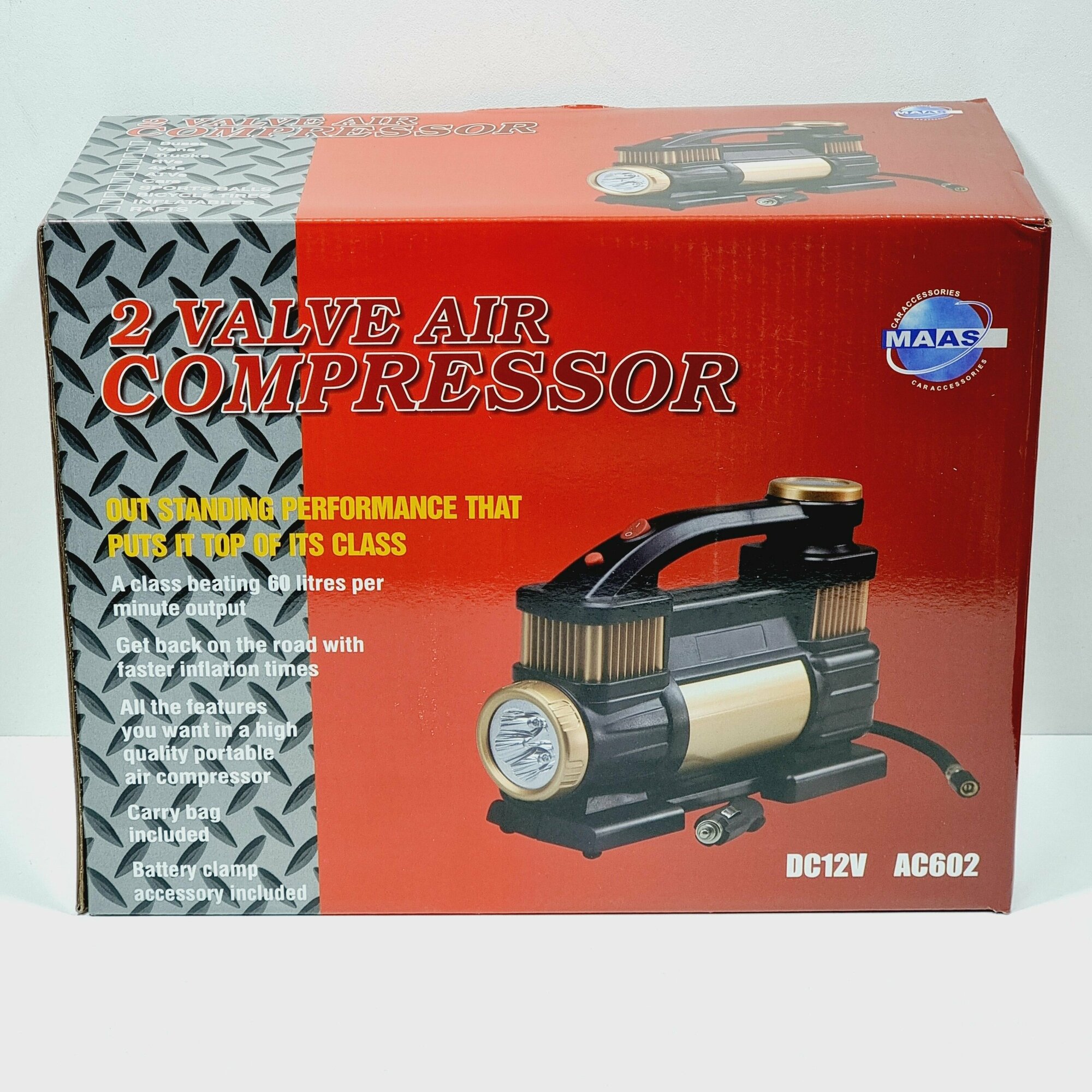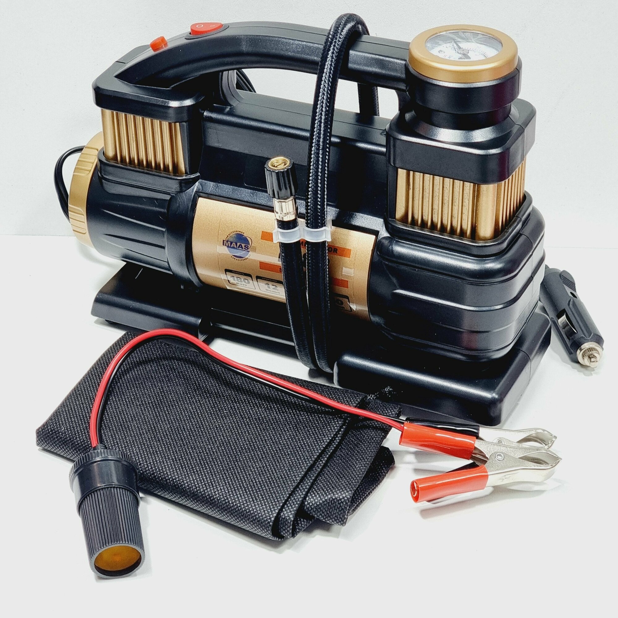 Купить Компрессор автомобильный двухпоршневой с фонарём и переходником от АКБ Maas-602 / 60л.м, 0.8м шланг, 3.0м кабель, 300w