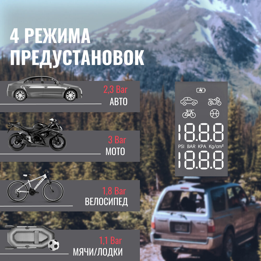 Компрессор автомобильный с электронным манометром и функцией "автостоп" модель АС630Ма