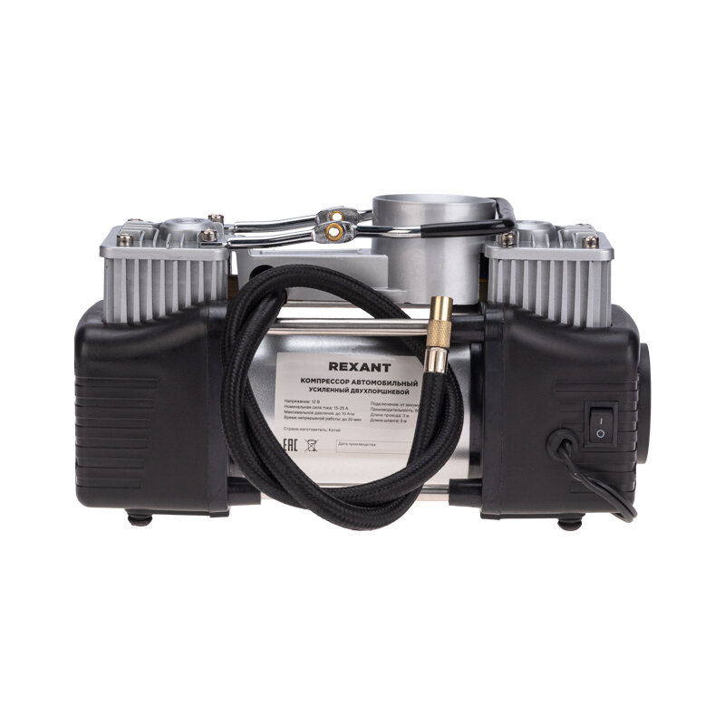 Компрессор автомобильный Rexant усиленный, двухпоршневой, 10Атм, 60л/мин