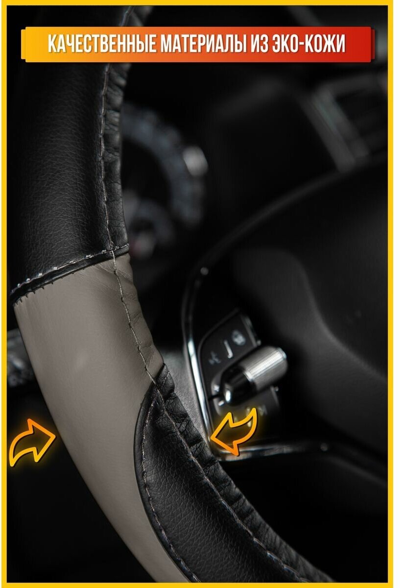 Оплетка на руль Рено Сандеро Степвей (Renault Sandero Stepway), М(37-39см), Черно-бежевая