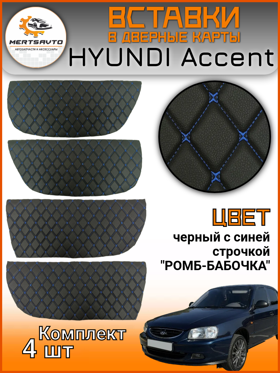Вставки в дверные карты Hyundai Accent (Хендэ Акцент), обшивки дверей (синий ромб) интересное: