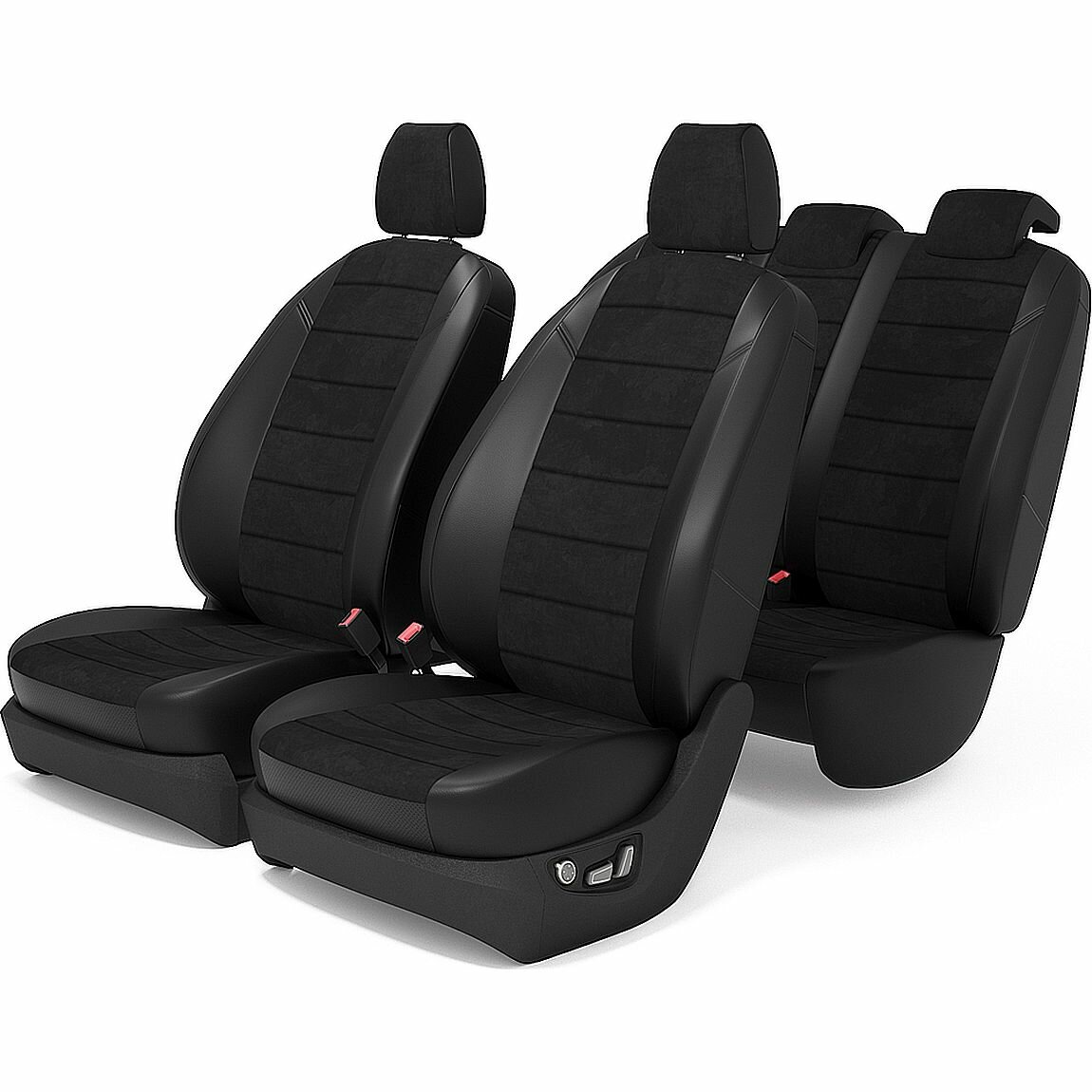 Комплект каркасных чехлов 5D CarFashion Consul Plus, чёрные, отстрочка серая