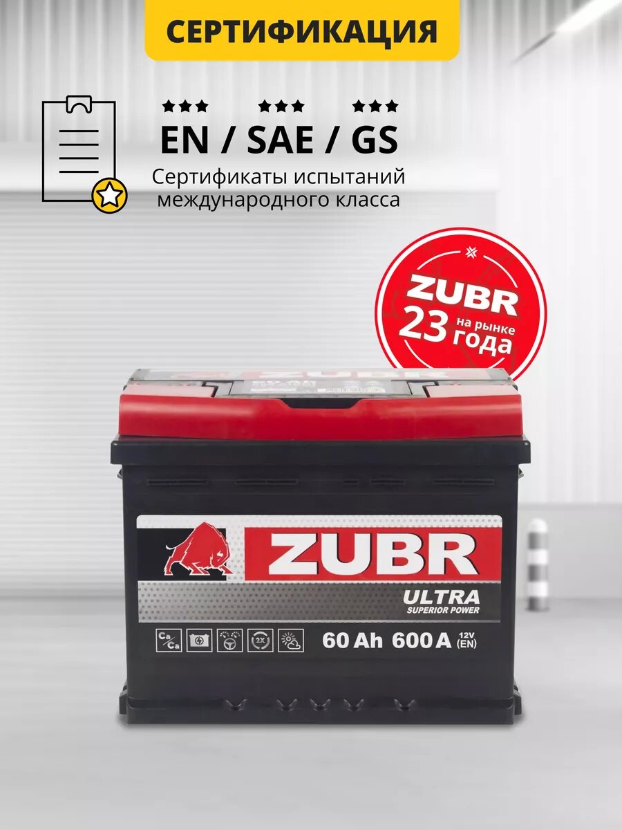 Аккумулятор автомобильный Zubr Ultra 60 А/ч 600 А обр. пол. Евро авто (242х175х190) ZU600 интересное:
