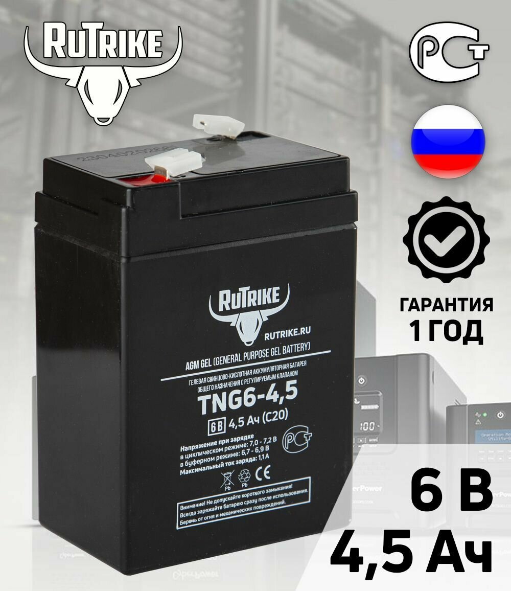 Тяговый аккумулятор Rutrike TNG6-4,5 (6V4,5A/H C20) интересное: