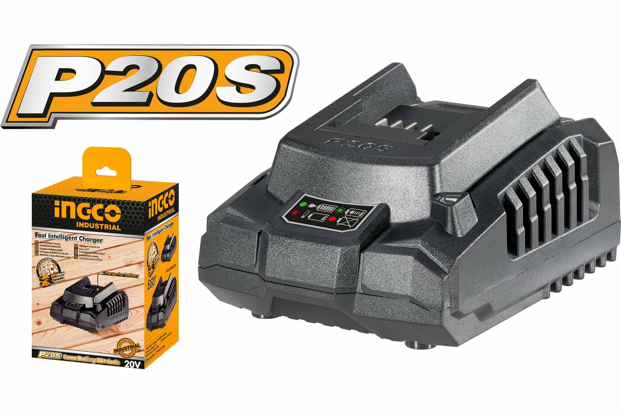 | Дополнительная информация | Быстрое интеллектуальное зарядное устройство INGCO FCLI2001, 20В для 2Ah и 4Ah |