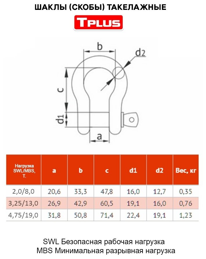 Комплект шаклов Tplus 2 тонны, T001377 интересное: