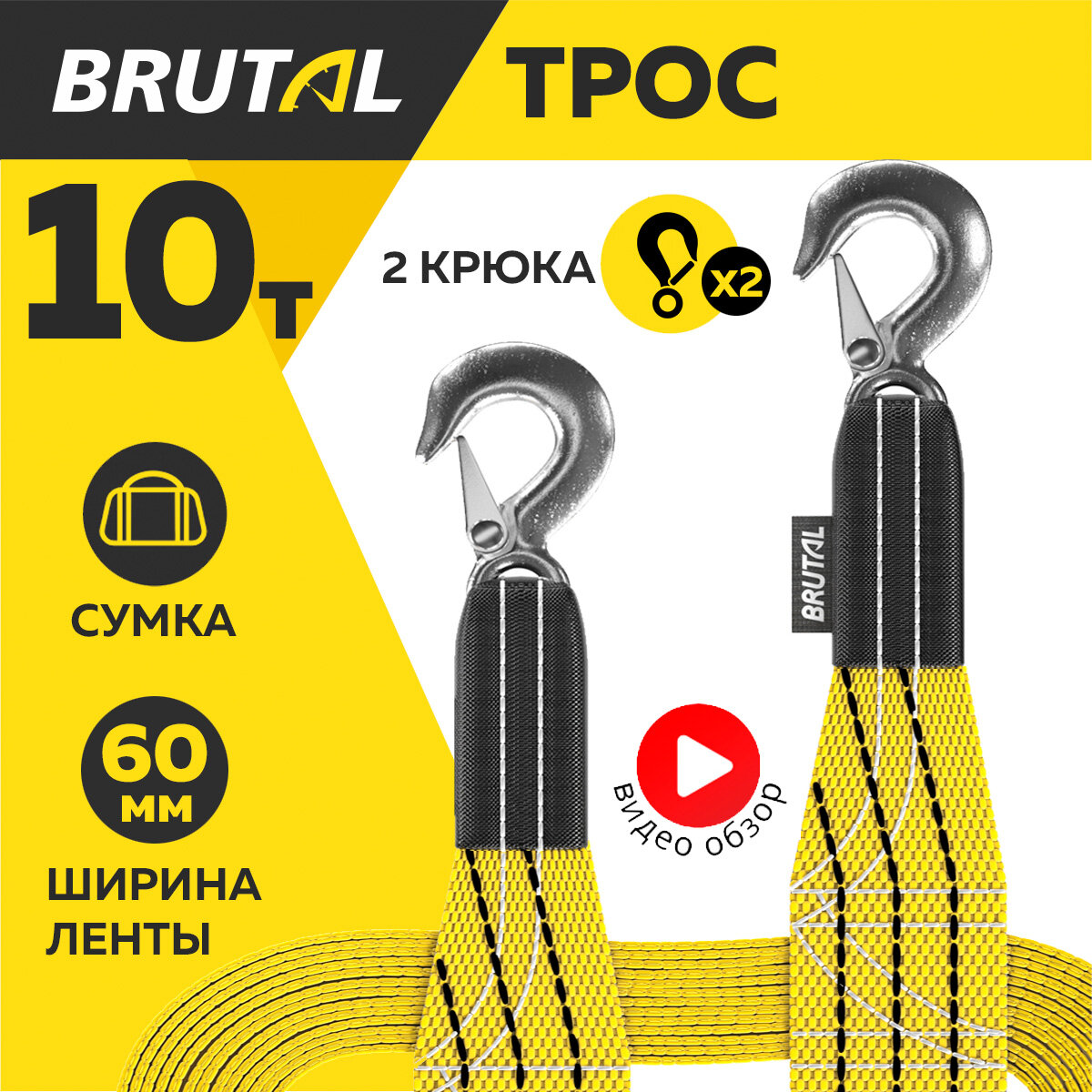 Трос буксировочный автомобильный BRUTAL 10 тонн, крюки, сумка интересное: