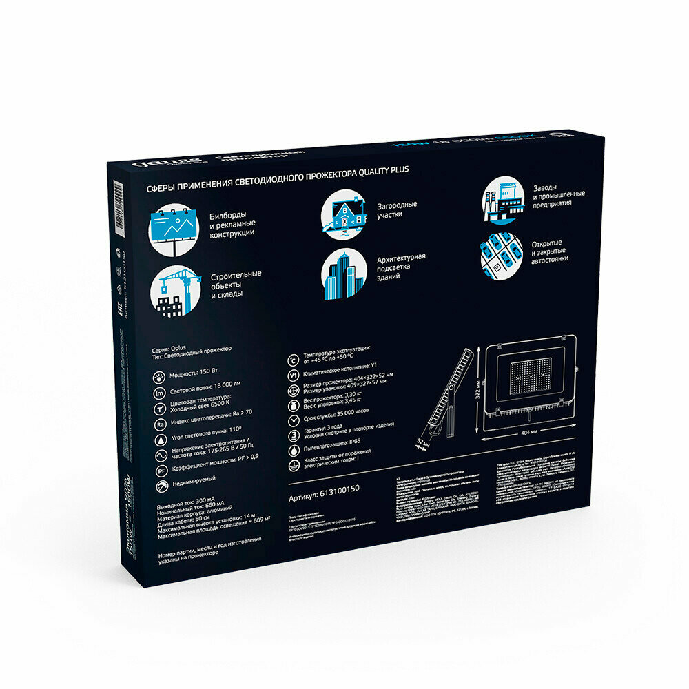 Прожектор уличный светодиодный Gauss Qplus 150W IP65 холодный белый свет, цвет черный