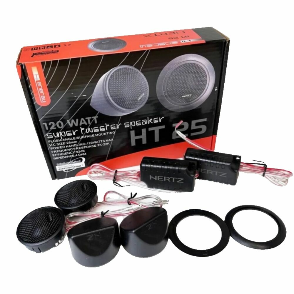 Твитеры автомобильные со встроенным фильтром "HERTZ HT-25" / Комплект из 2 штук / Высокочастотные динамики, пищалки, 44 мм, 120 Вт.