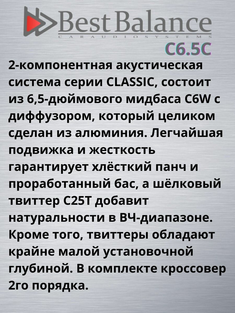 Динамики компонентные Best Balance C6.5C (комплект 2 шт) интересное: