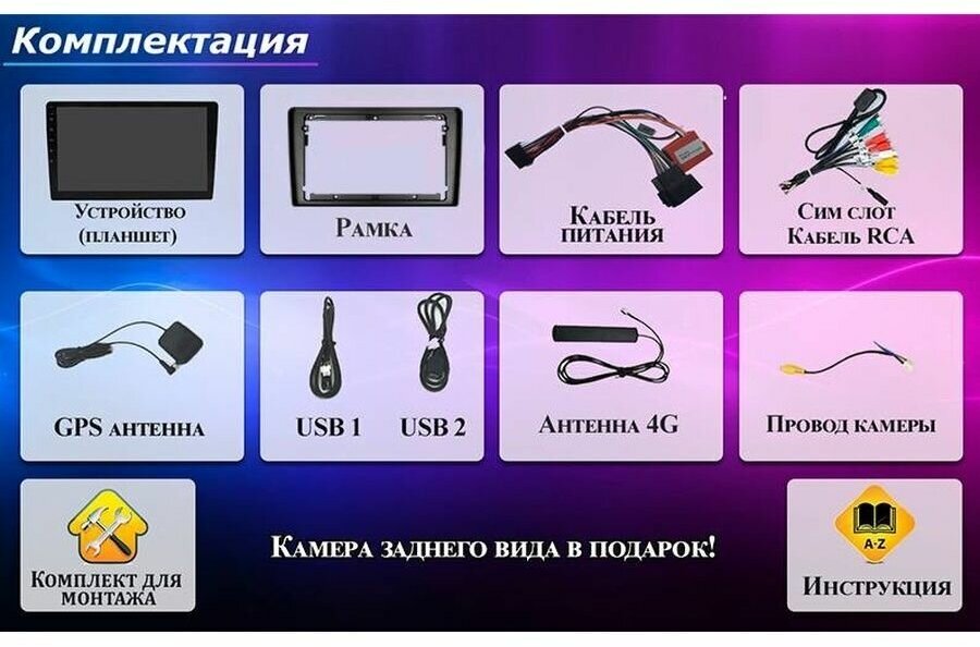 | Подробная комплектация | магнитола; провода для подключения; инструкция; Переходная рамка |