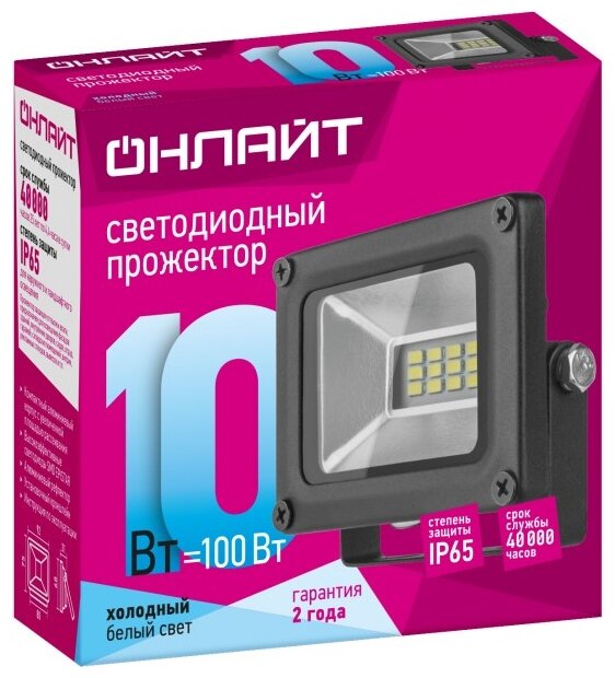СохранитьПрожектор светодиодный онлайт OFL-10-4K-BL-IP65-LED, 10 Вт, свет: дневной белый интересное: