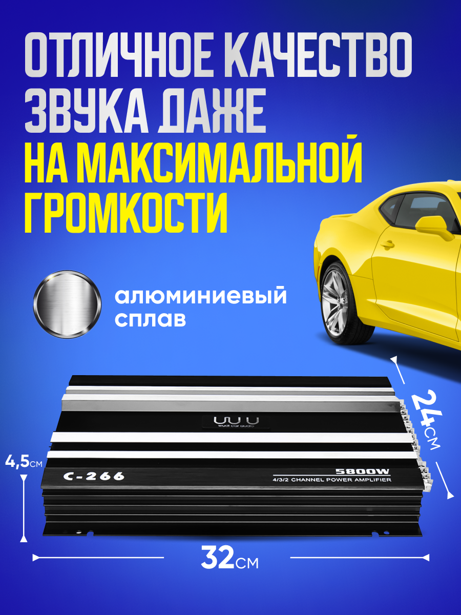 Купить 4х канальный аудио усилитель мощности Wudi C-266 для автомобиля 5800W