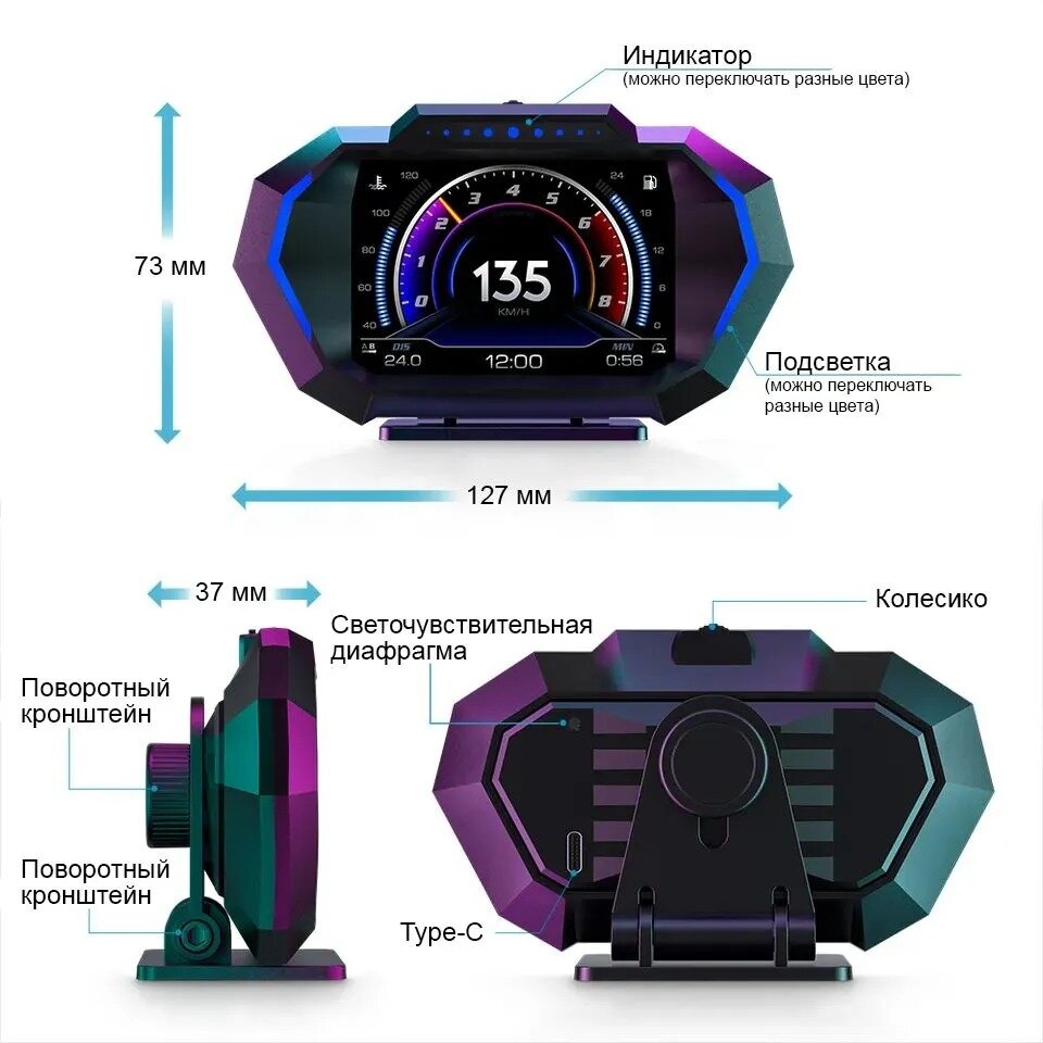 Проекционный дисплей P24 (HUD) с подключением через OBD2 интересное: