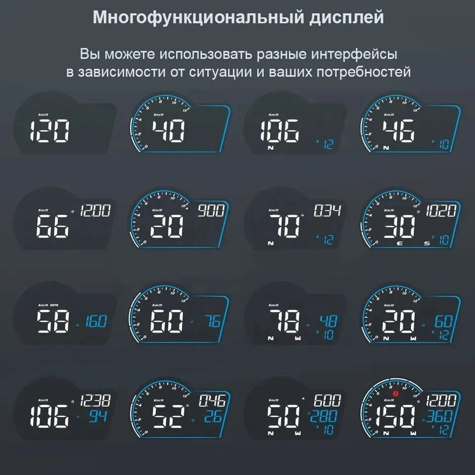 Проекционный дисплей G16 (HUD) с подключением через USB multi color интересное: