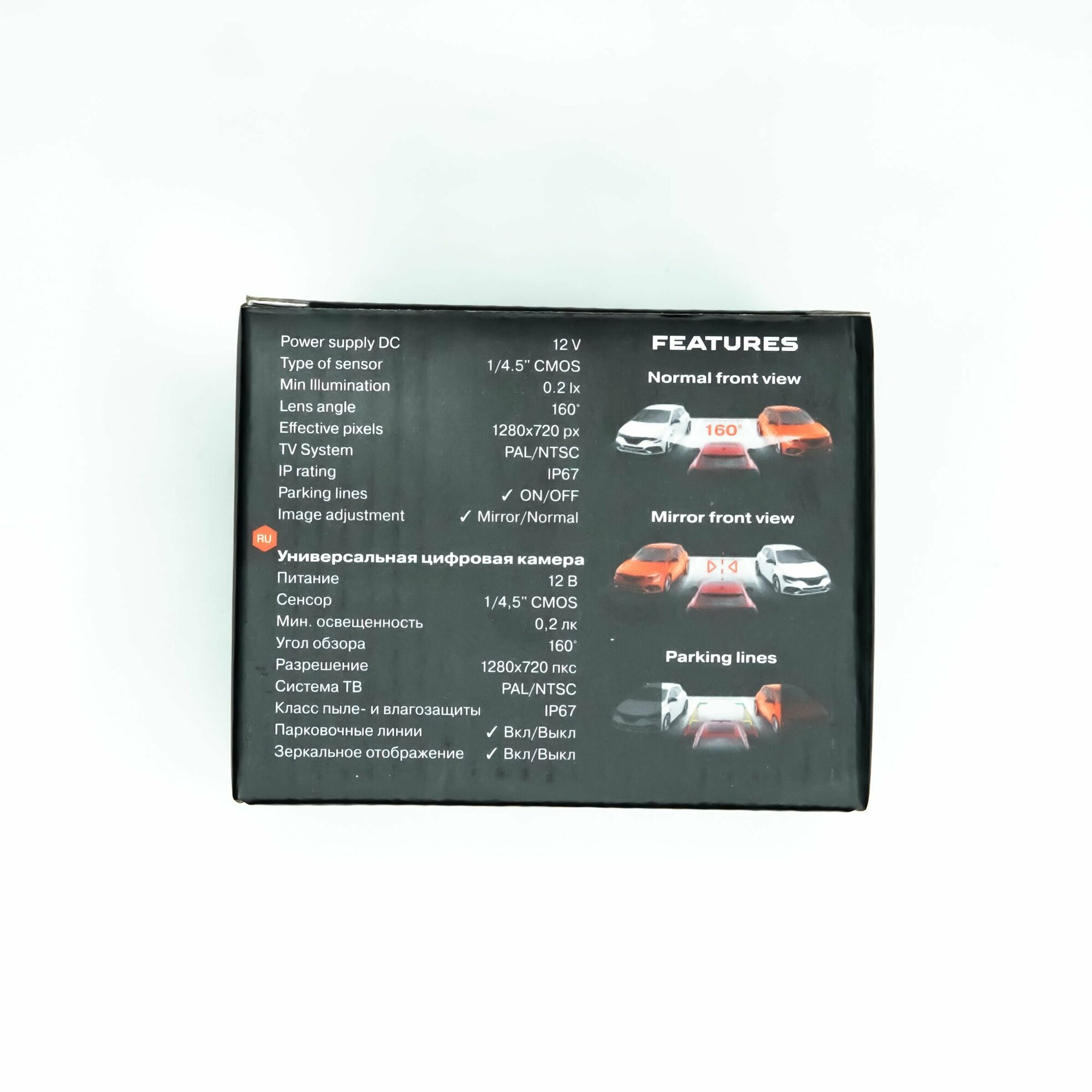 | Особенности | автоматическая настройка баланса белого / автоматическая настройка экспозиции / активация задней передачей / зеркальное отображение / ночной режим / парковочные линии |