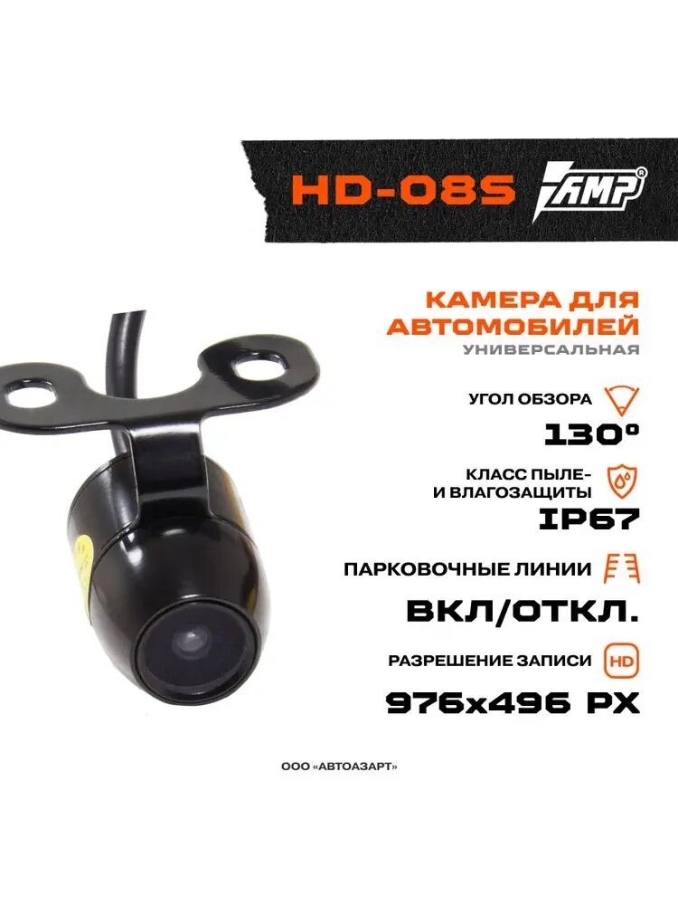 Автомобильная камера заднего вида проводная AMP HD-08S (провод 5 метров) интересное:
