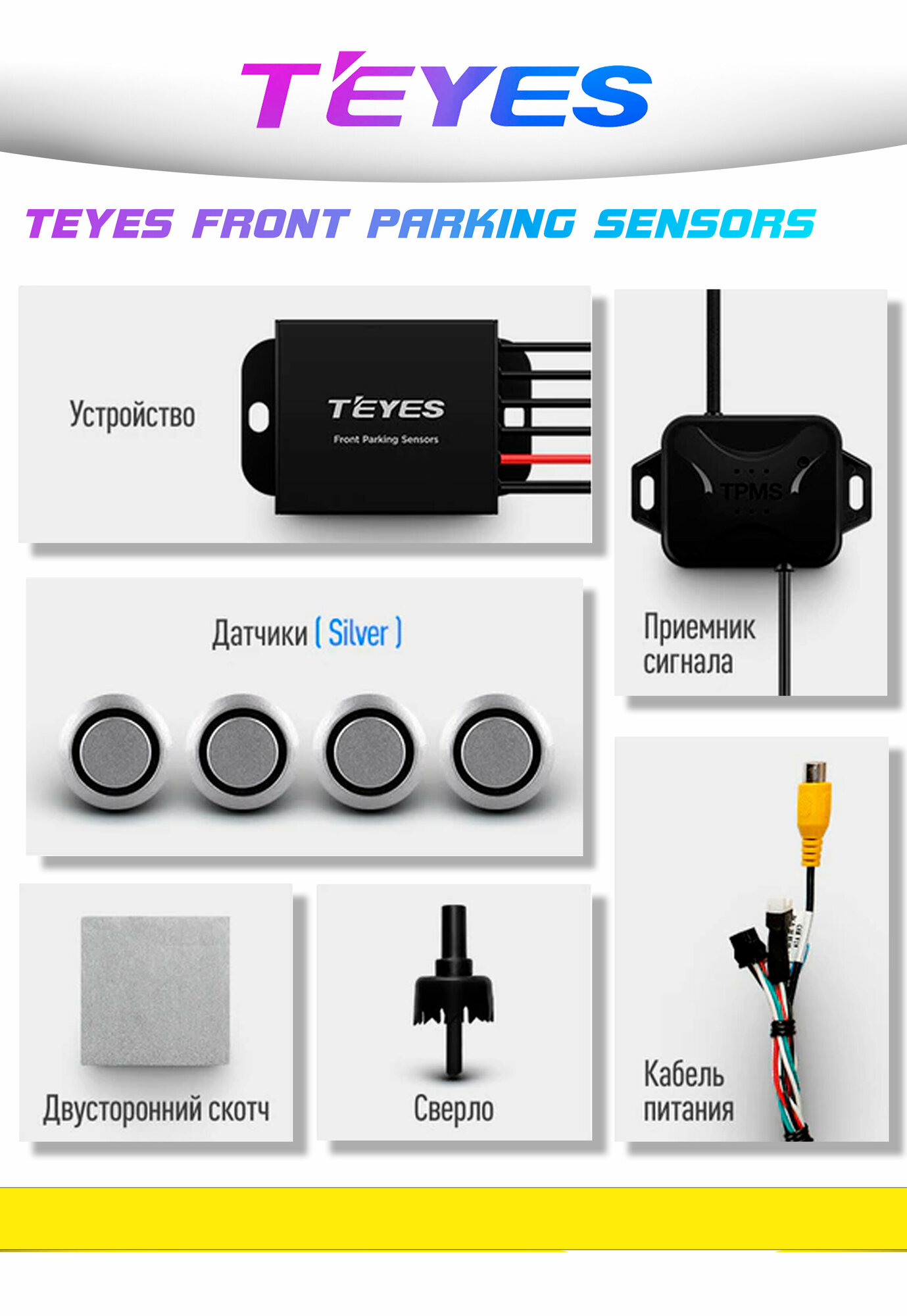 Ниже Вы можете прочитать отзывы на TEYES Передние автомобильные парктроники. Цвет серебристый., ознакомится с подробными характеристиками, посмотреть интересные обзоры и фотографии на TEYES Передние автомобильные парктроники. Цвет серебристый..
