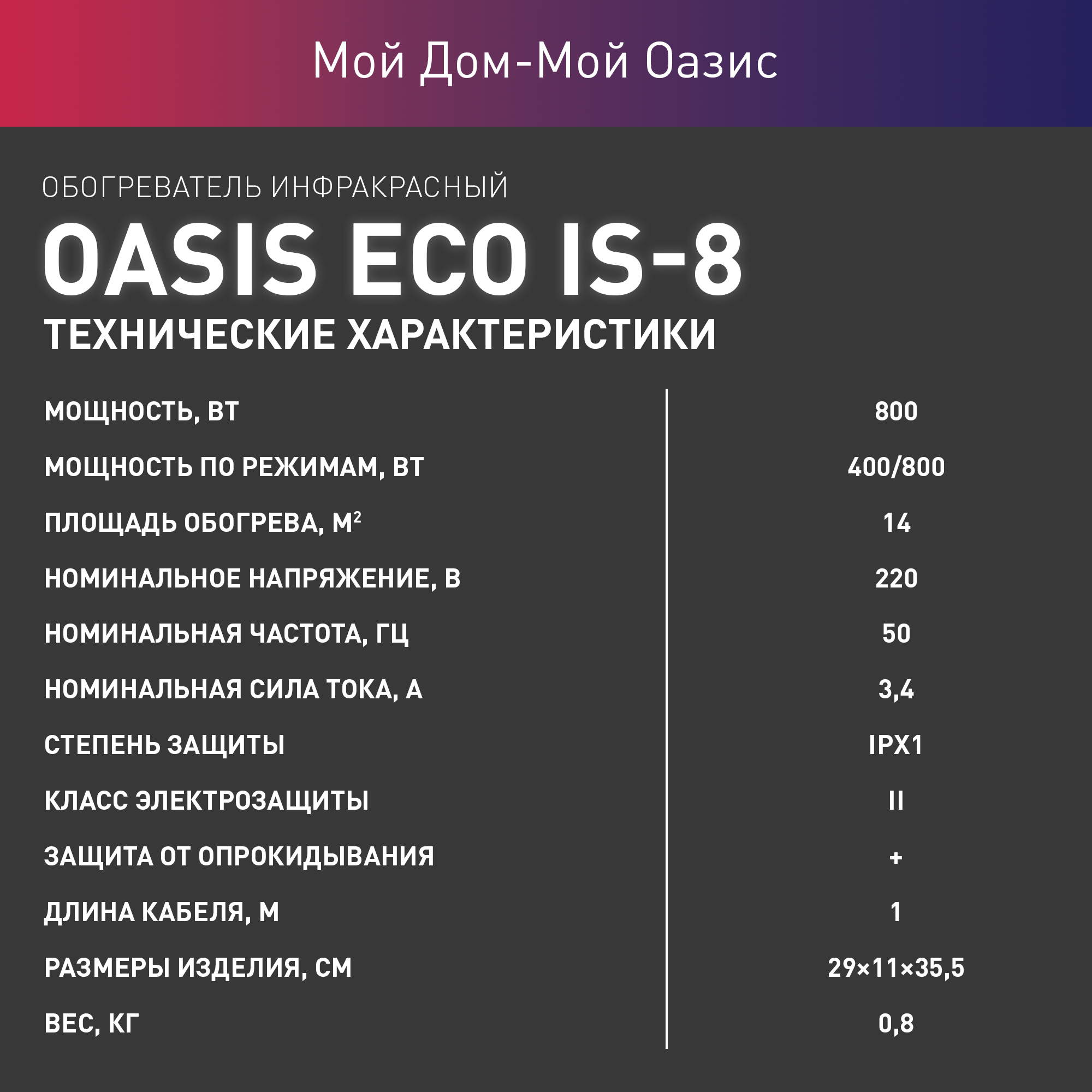 Инфракрасный обогреватель Oasis Eco IS-8 интересное: