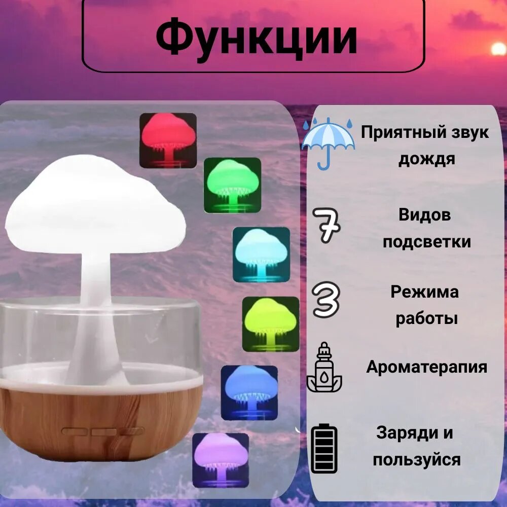 Купить Увлажнитель воздуха для дома с функцией ночника "Гриб"с подсветкой и эффектом дождя,диффузор,ароматизатор воздуха и аромоувлажнитель