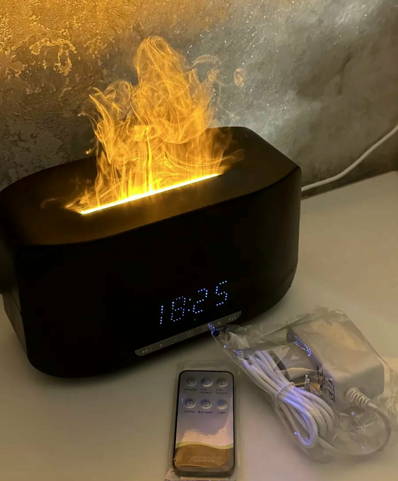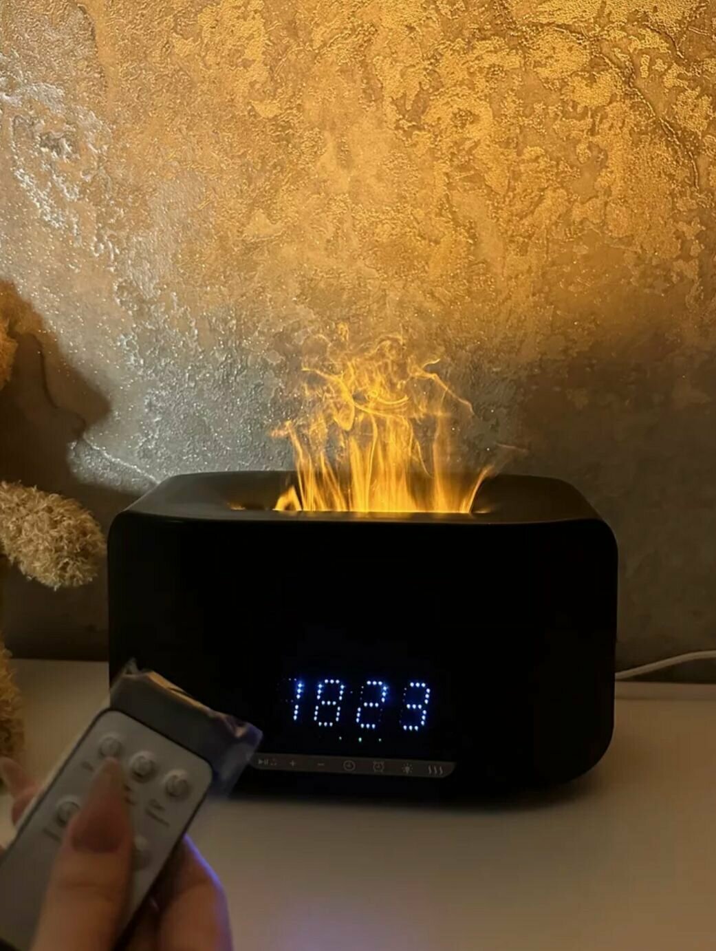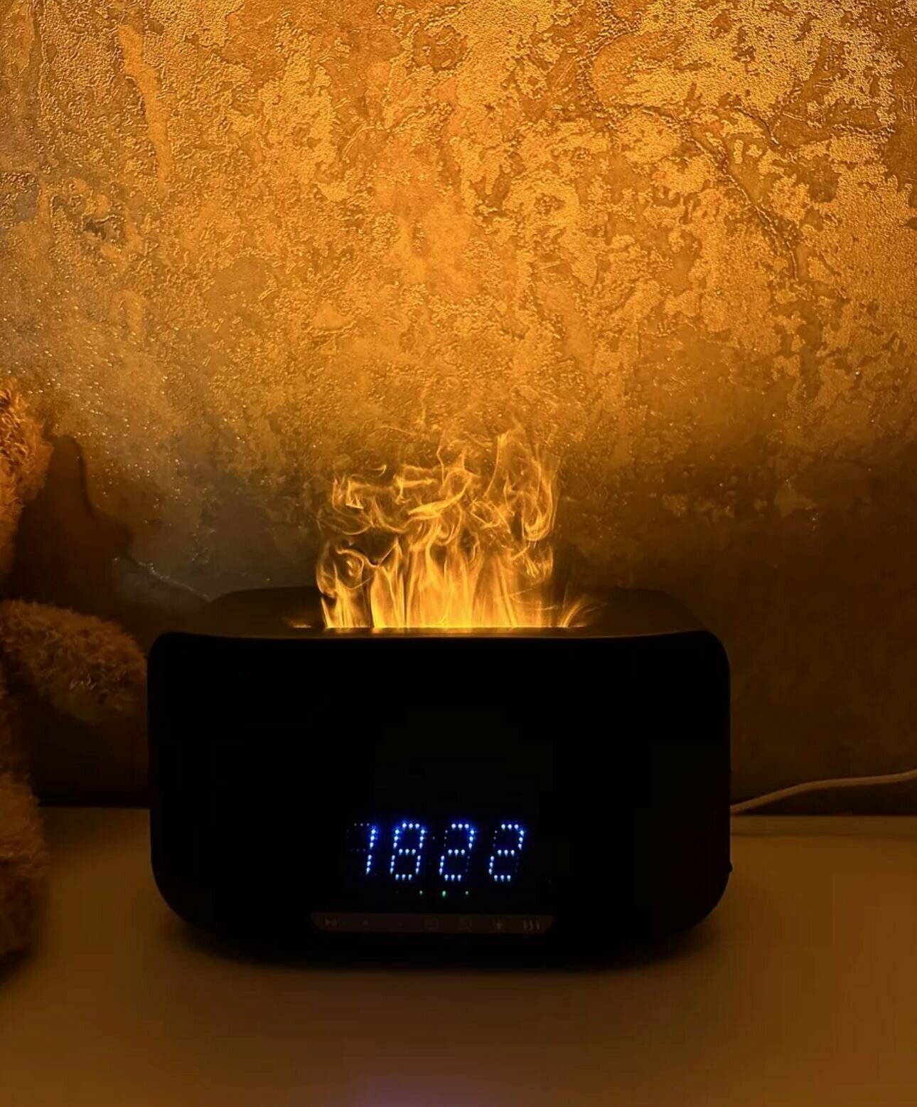 Увлажнитель воздуха с эффектом пламени с функцией ароматизации, часы и встроенная блютуз колонка/Аромадиффузор для эфирных масел интересное: