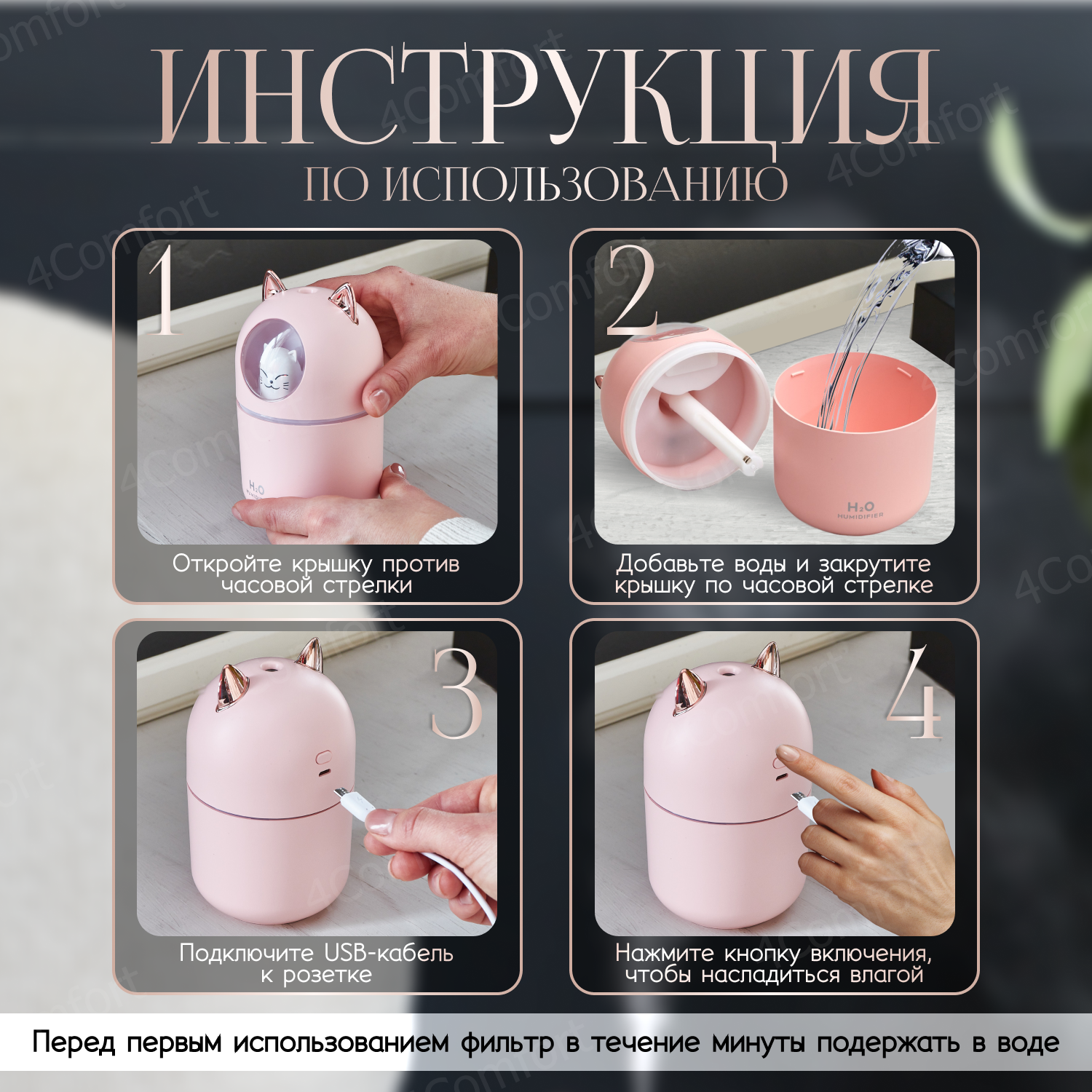 Увлажнитель воздуха мини настольный ультразвуковой розовый интересное: