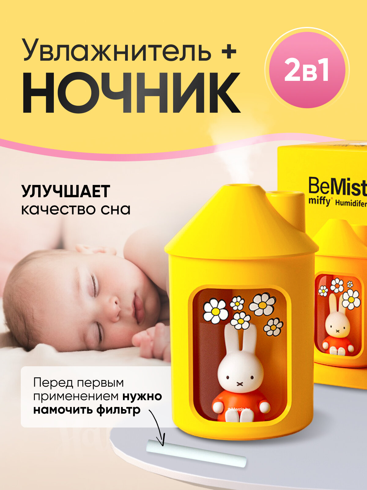 "Увлажнитель с подсветкой" - детский мини-увлажнитель воздуха с функцией ночника2 интересное: