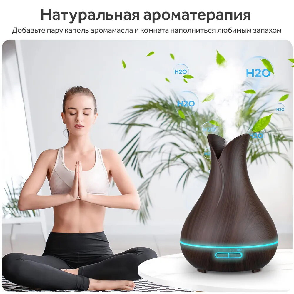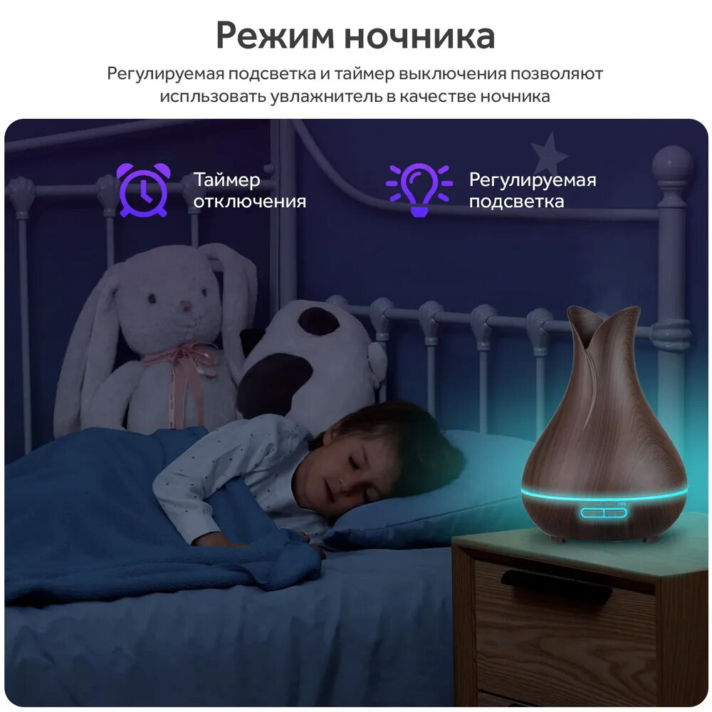 Увлажнитель воздуха с функцией ароматизации, HM-007, Ультразвуковой, 550 мл, подсветка LED, аромадиффузор, темное дерево интересное: