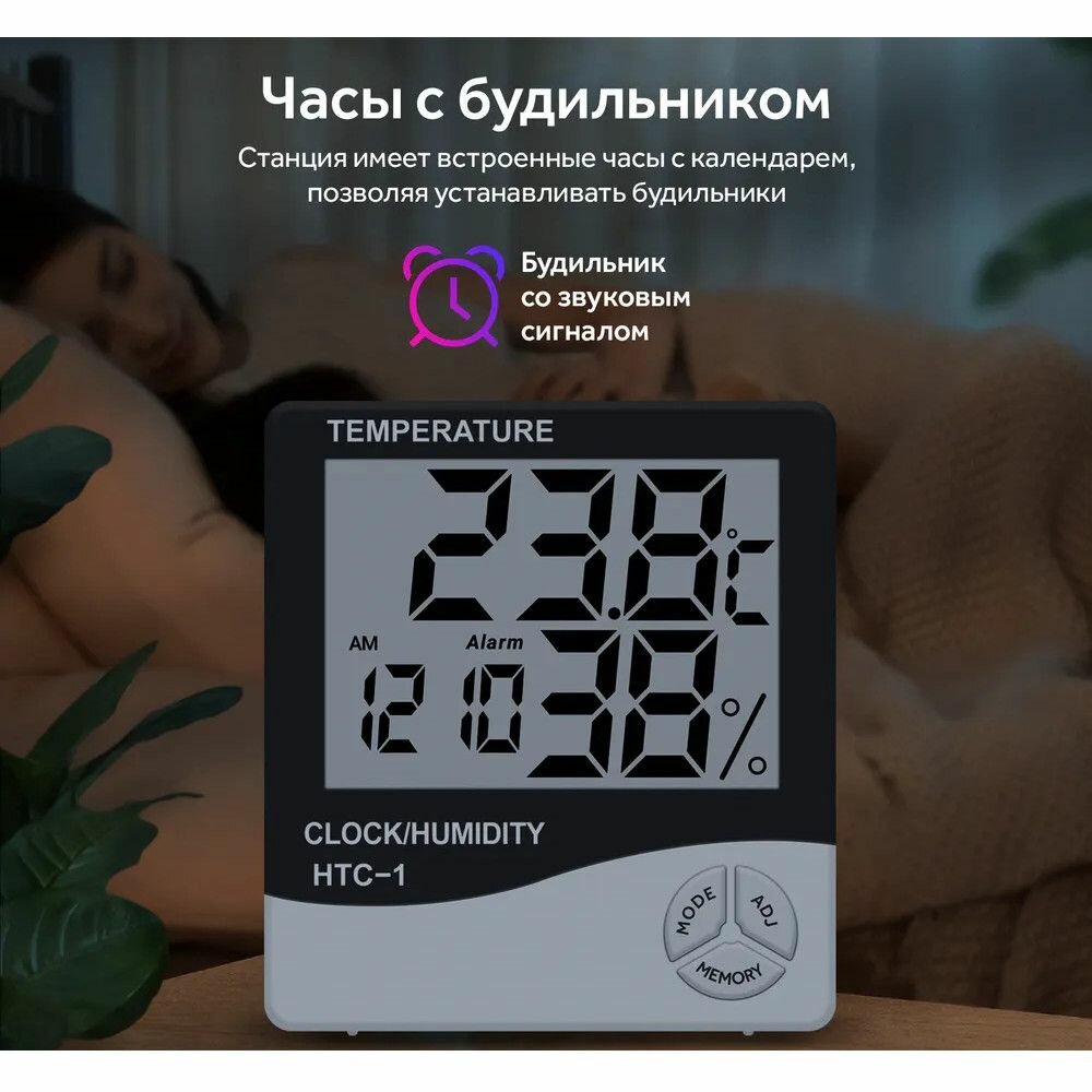 Электронный термометр гигрометр комнатный настенный HTC-1 / Термогигрометр цифровой настольный / Погодная станция интересное: