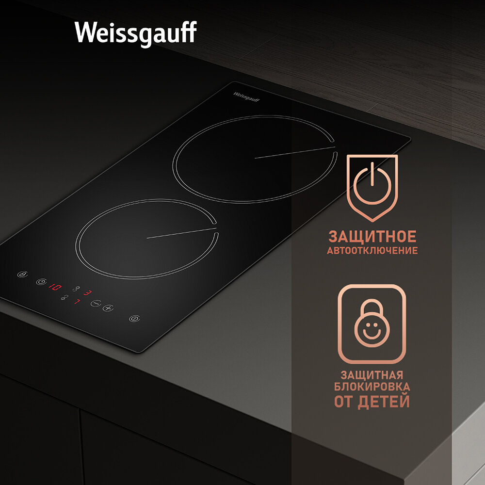 Варочная панель Weissgauff HV 32 BM 3 года гарантии, Сенсорное управление, 9 уровней мощности, Мощность 3000 Вт, Таймер, Индикация остаточного тепла, Защитное автоотключение, Блокировка от детей