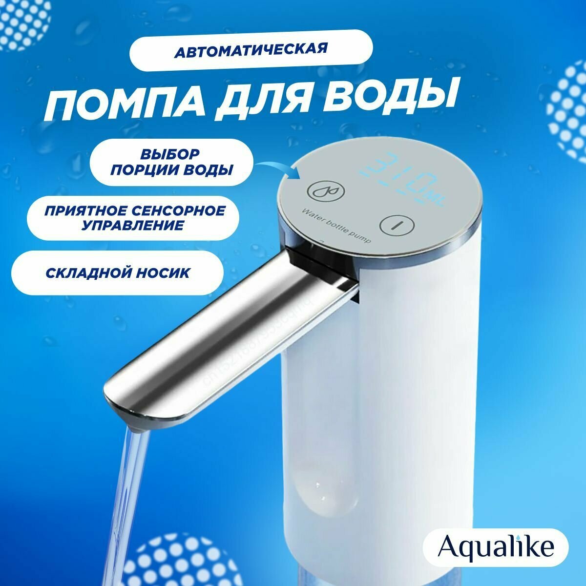 Помпа для воды электрическая на бутыль 19л со складным носиком Aqualike интересное: