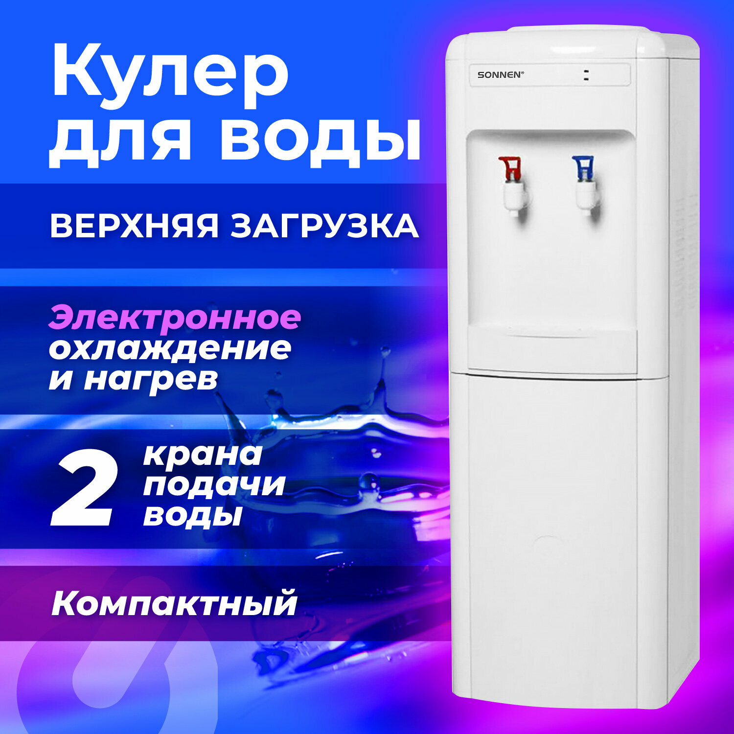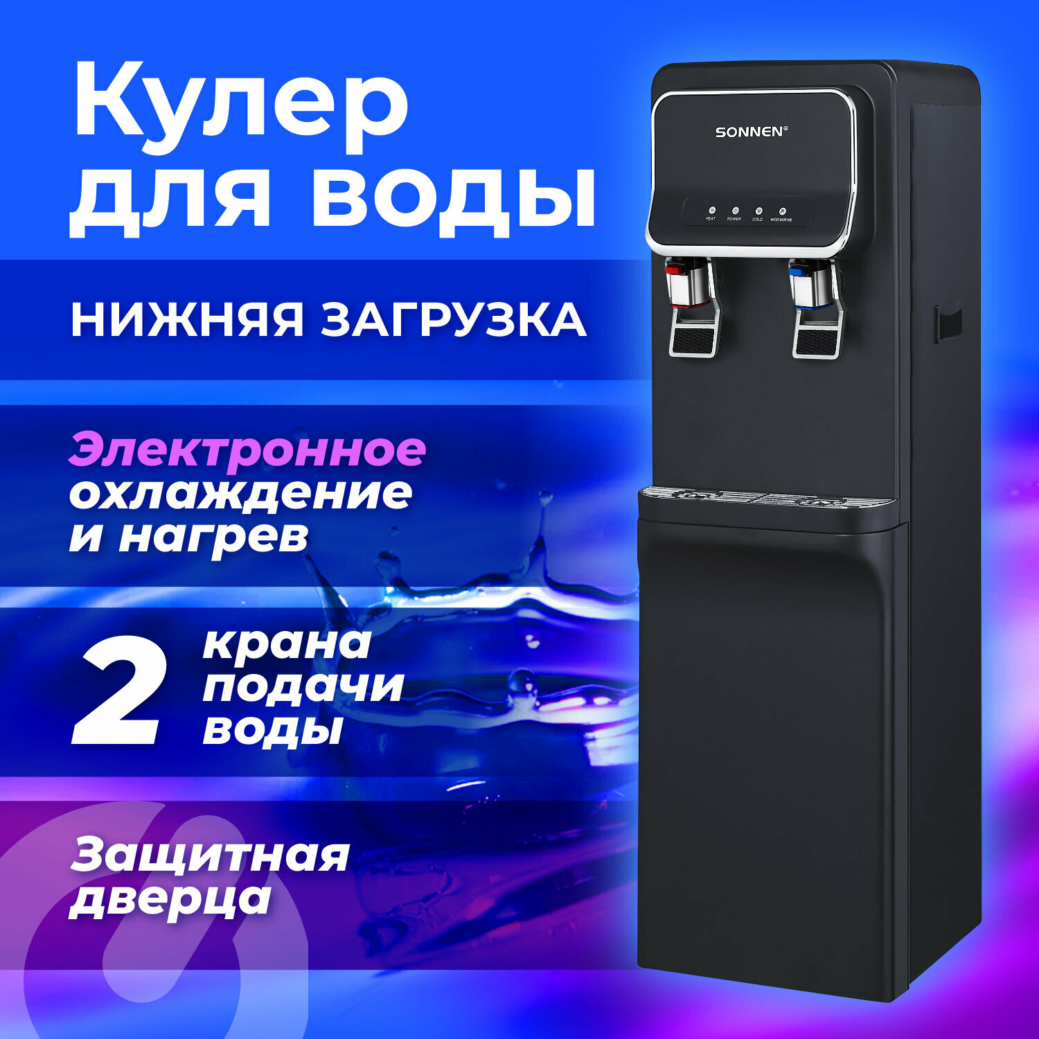 Кулер для воды SONNEN FSE-02WB, напольный, нагрев/охлаждение, нижняя загрузка, 2 крана, черный интересное: