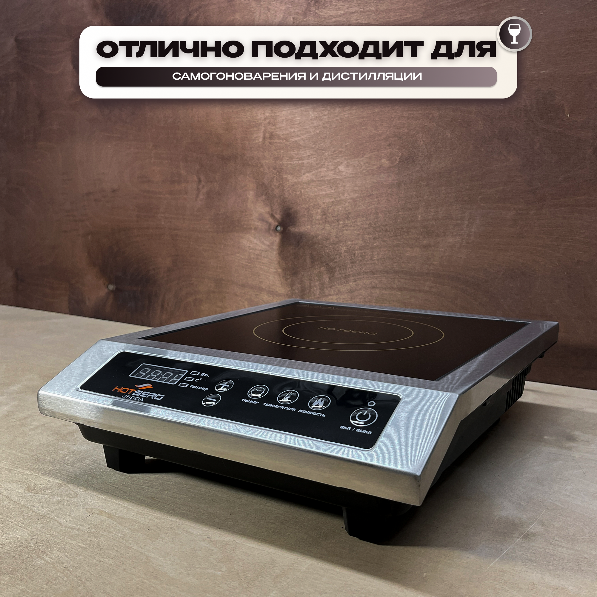 Индукционная плита Hotberg 3500A, 3.5 кВт, шаг 100 Вт, таймер 24 часа, для самогоноварения, для кафе и ресторанов интересное: