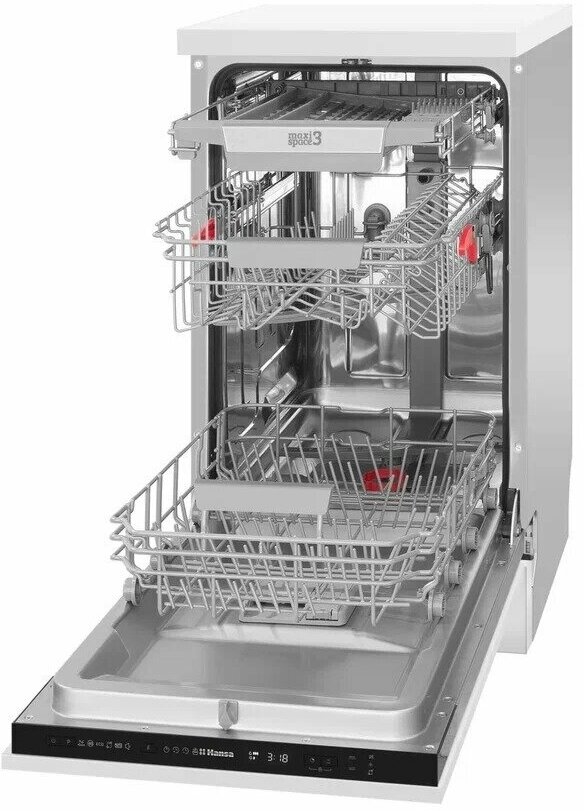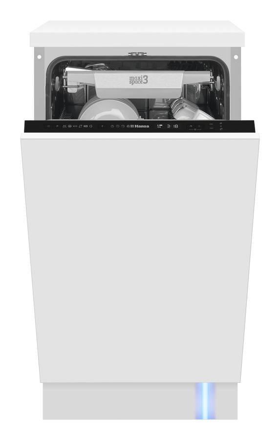 Встраиваемая посудомоечная машина Hansa ZIM426EBO, 45см, автооткрывание дверцы, с защитой от протечек, 6 программ, 3 корзины, луч на полу, функция зональной мойки и отсрочка старта