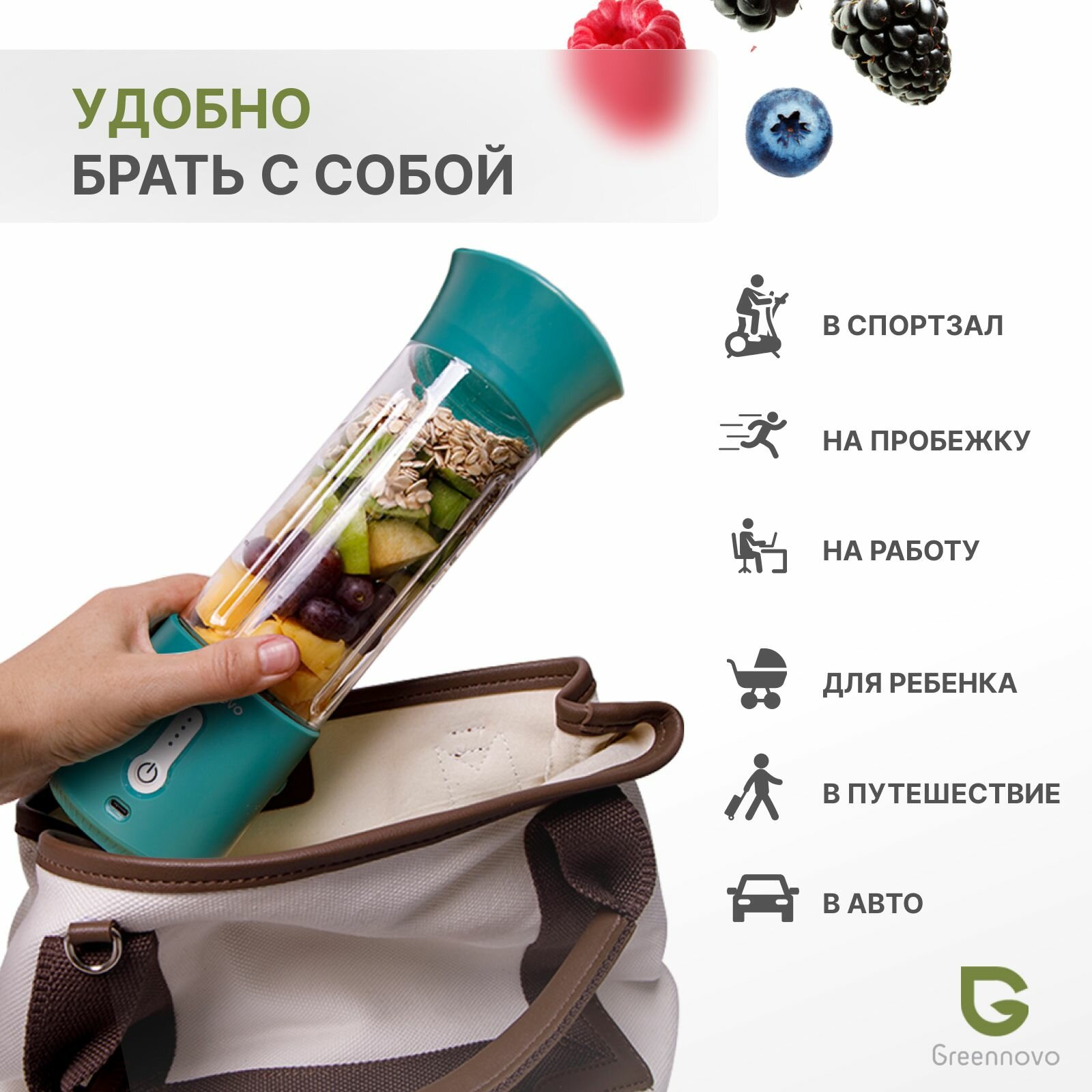 Купить Портативный беспроводной блендер темно-зеленый GREENNOVO измельчитель для смузи, коктейлей, спортивного питания, детского питания, льда, орехов