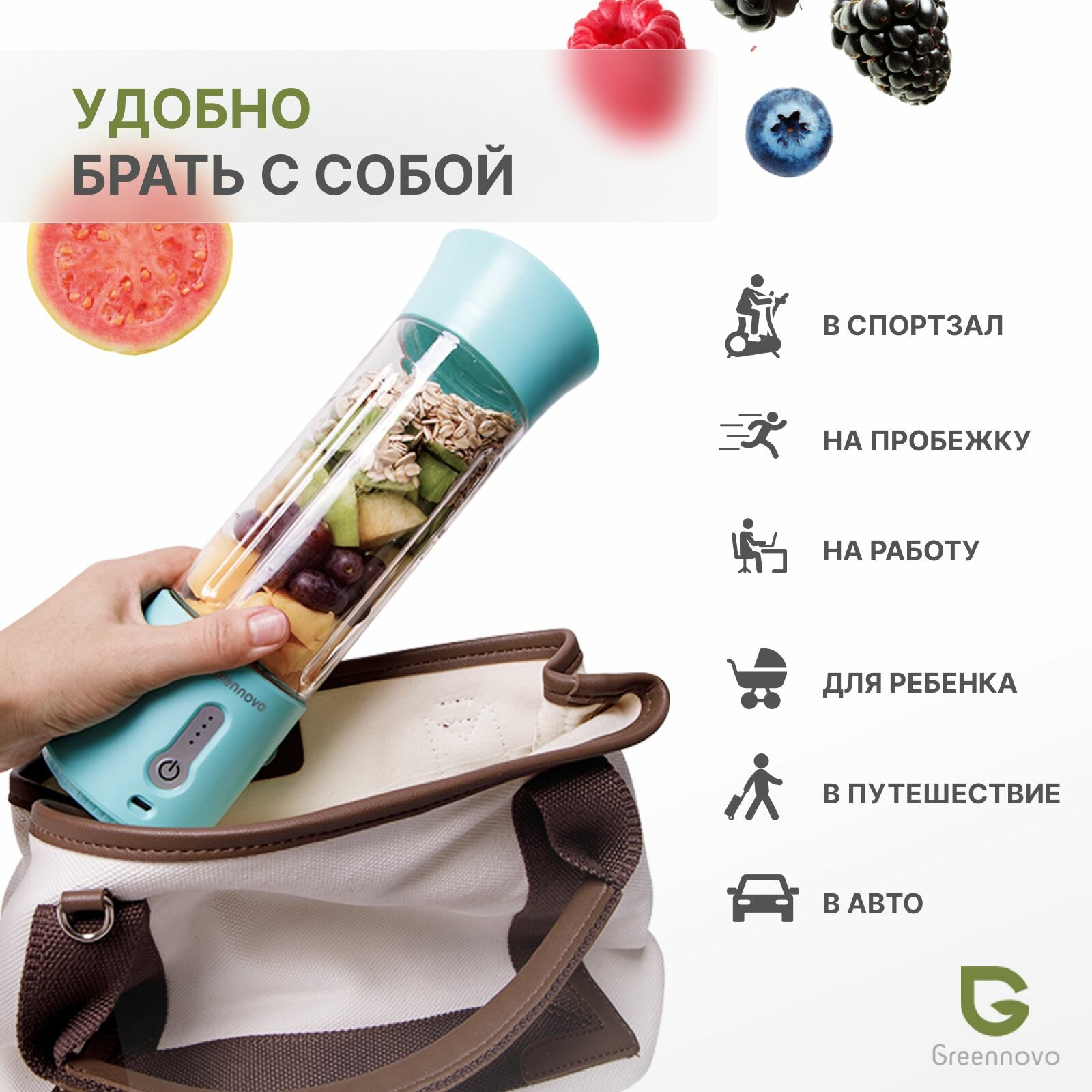 Купить Портативный беспроводной блендер голубой GREENNOVO измельчитель для смузи, коктейлей, спортивного питания, детского питания, льда, орехов