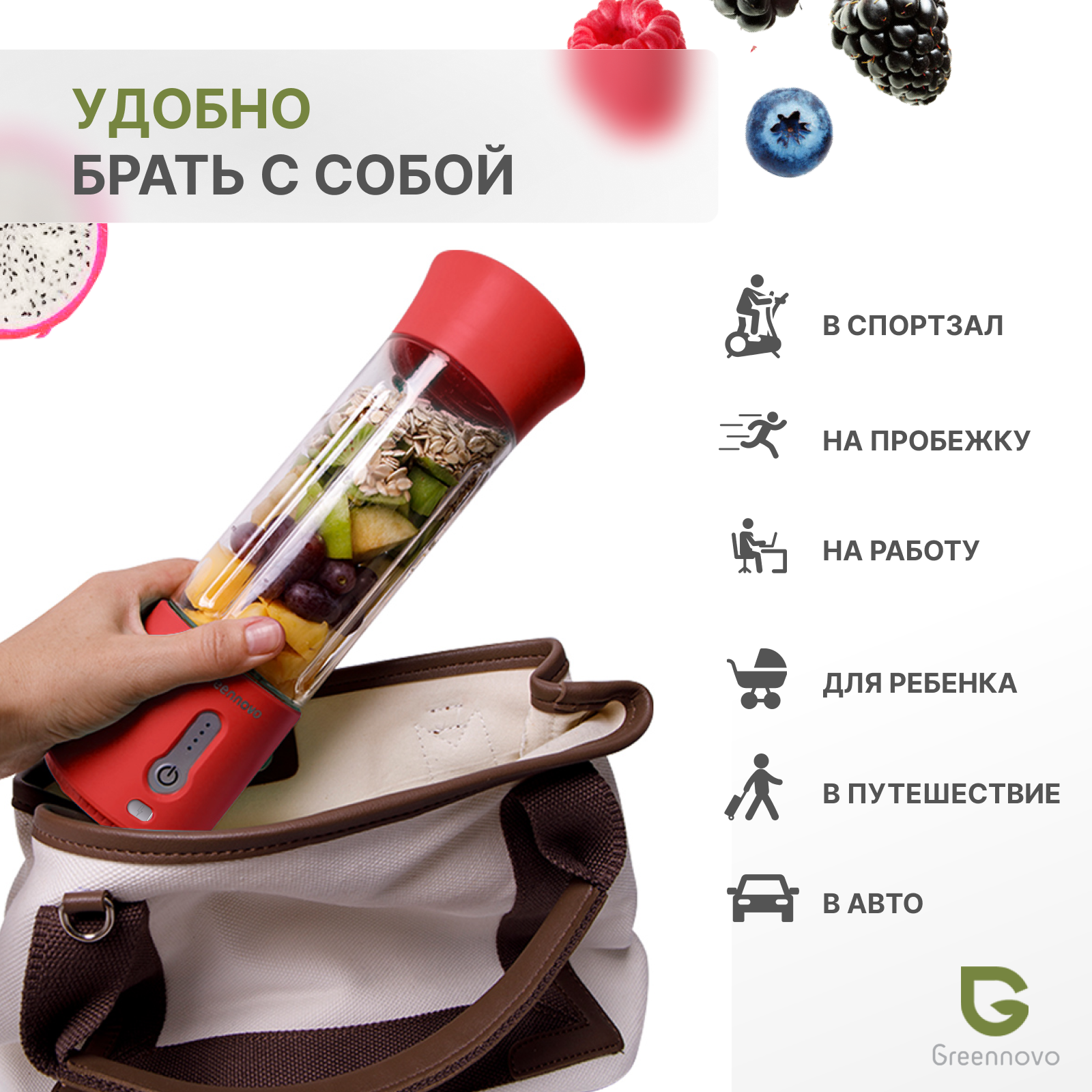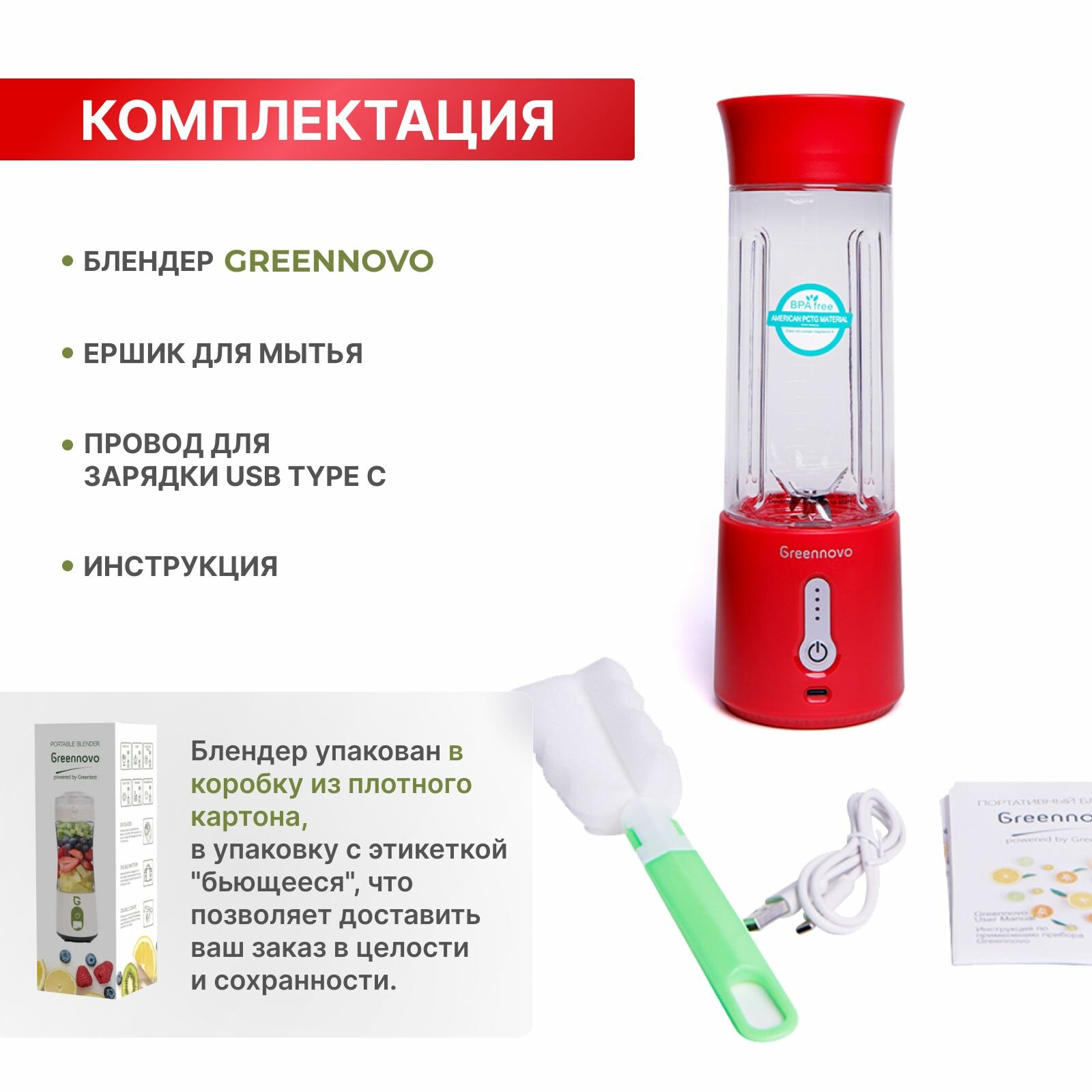 Купить Портативный беспроводной блендер красный GREENNOVO измельчитель для смузи, коктейлей, спортивного питания, детского питания, льда, орехов
