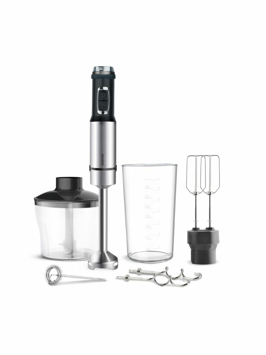 Купить Блендер погружной CENTEK CT-1311/ черный/сталь/ 1500 Вт/ 15 скоростей/ чоппер/ венчик/ крюк/ капучинатор