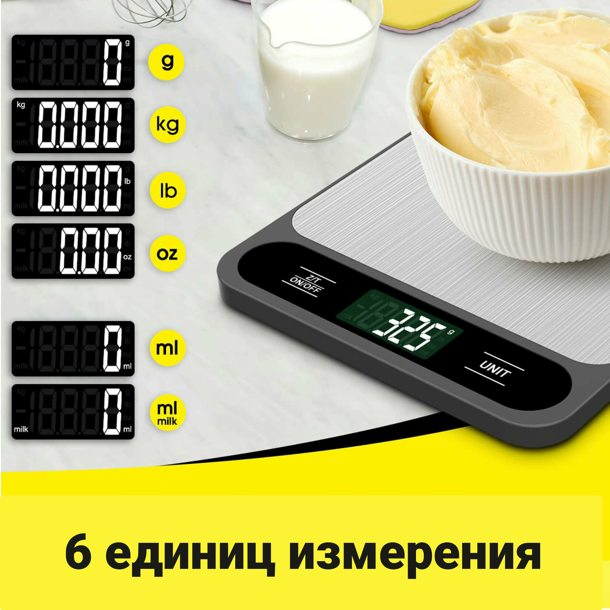 | Единицы измерения | граммы / кг/фунты / килограммы / литры / миллиграммы |