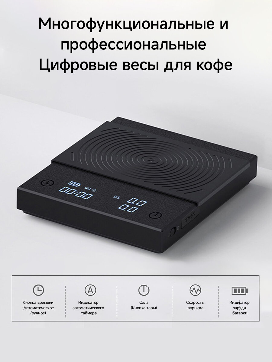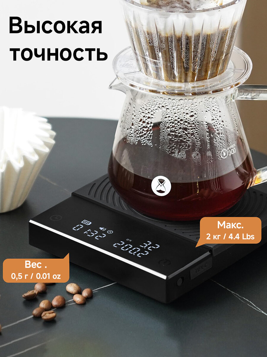 Электронные весы для эспрессо TIMEMORE Coffee Scale Basic 2.0 с таймером, 2000 г, расходом воды и функцией таймера интересное: