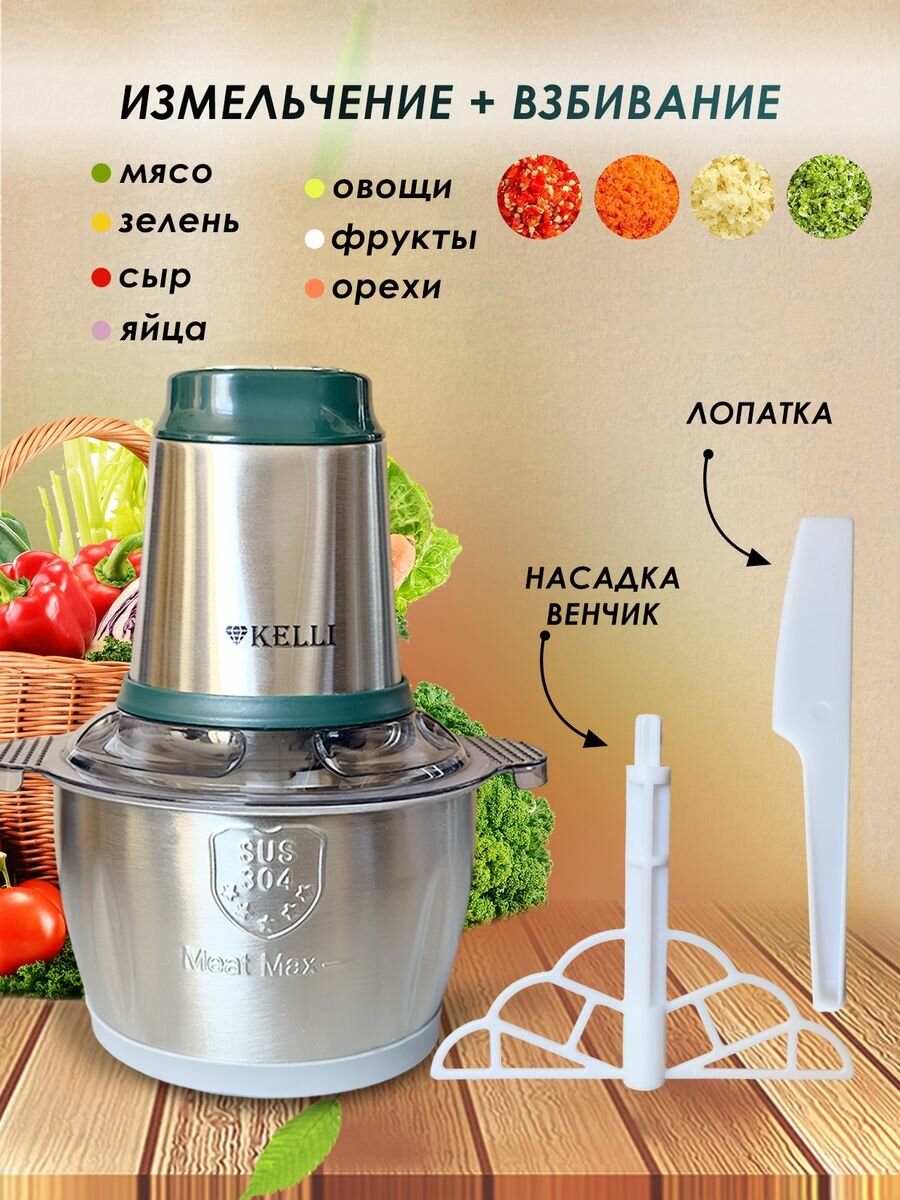Купить Измельчитель техно-вилка KELLI, электрический, 1.8 л, металлическая чаша, серебристый меланж