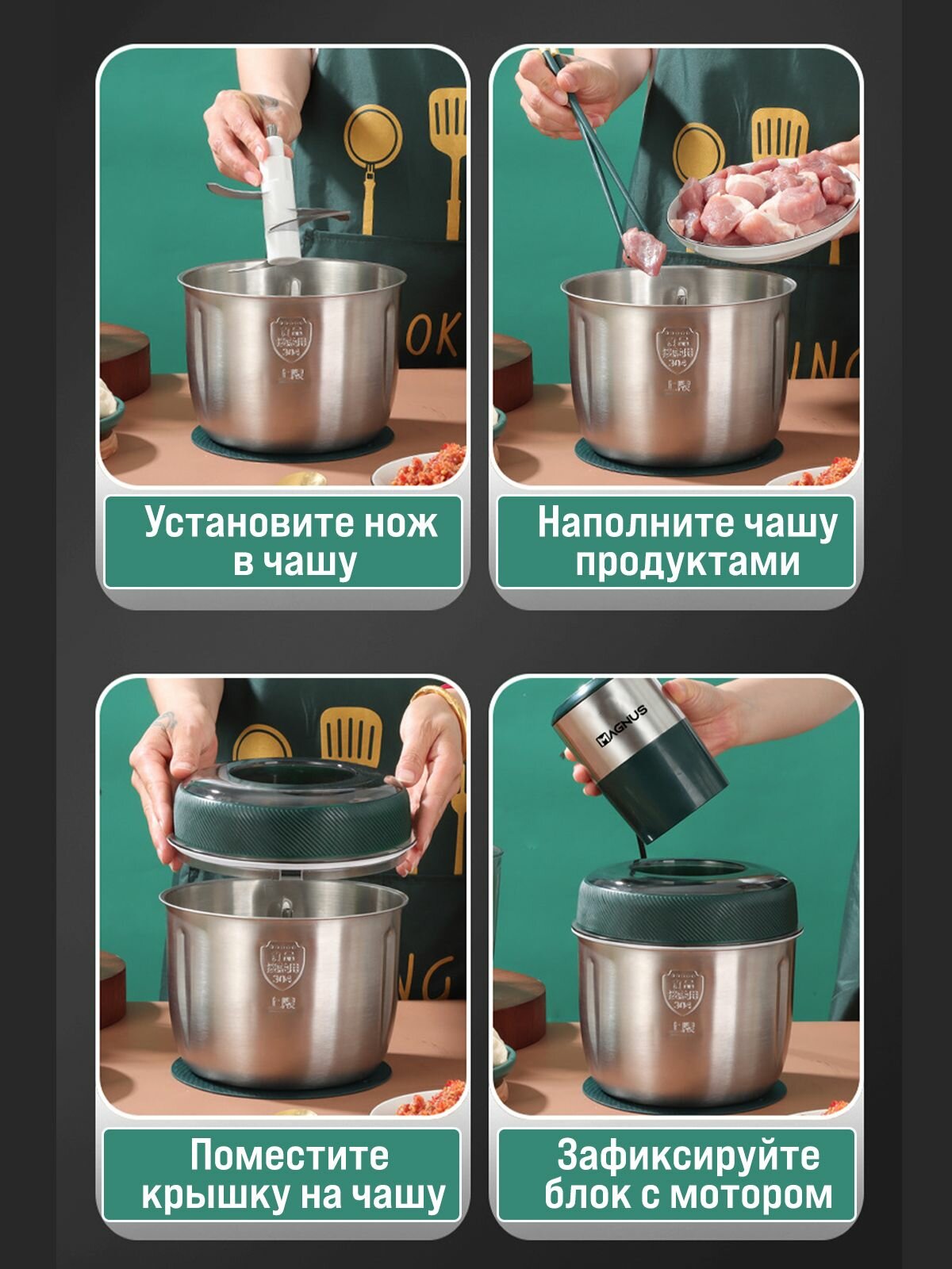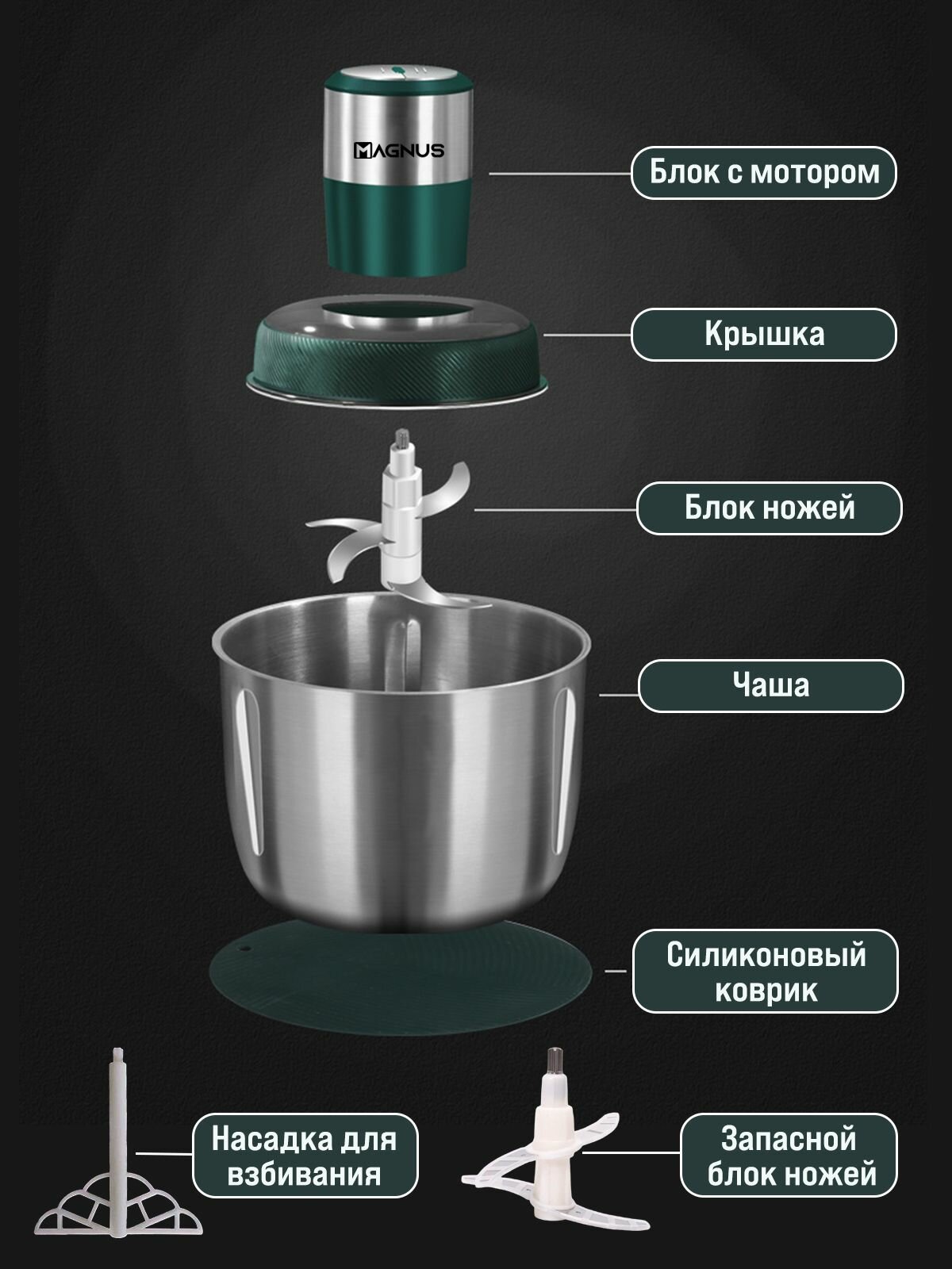 MAGNUS / Измельчитель продуктов электрический ZD-01. Мощность 1000 Вт. 2 чаши в комплекте. Объем чаш 3 л. Запасной нож в подарок интересное: