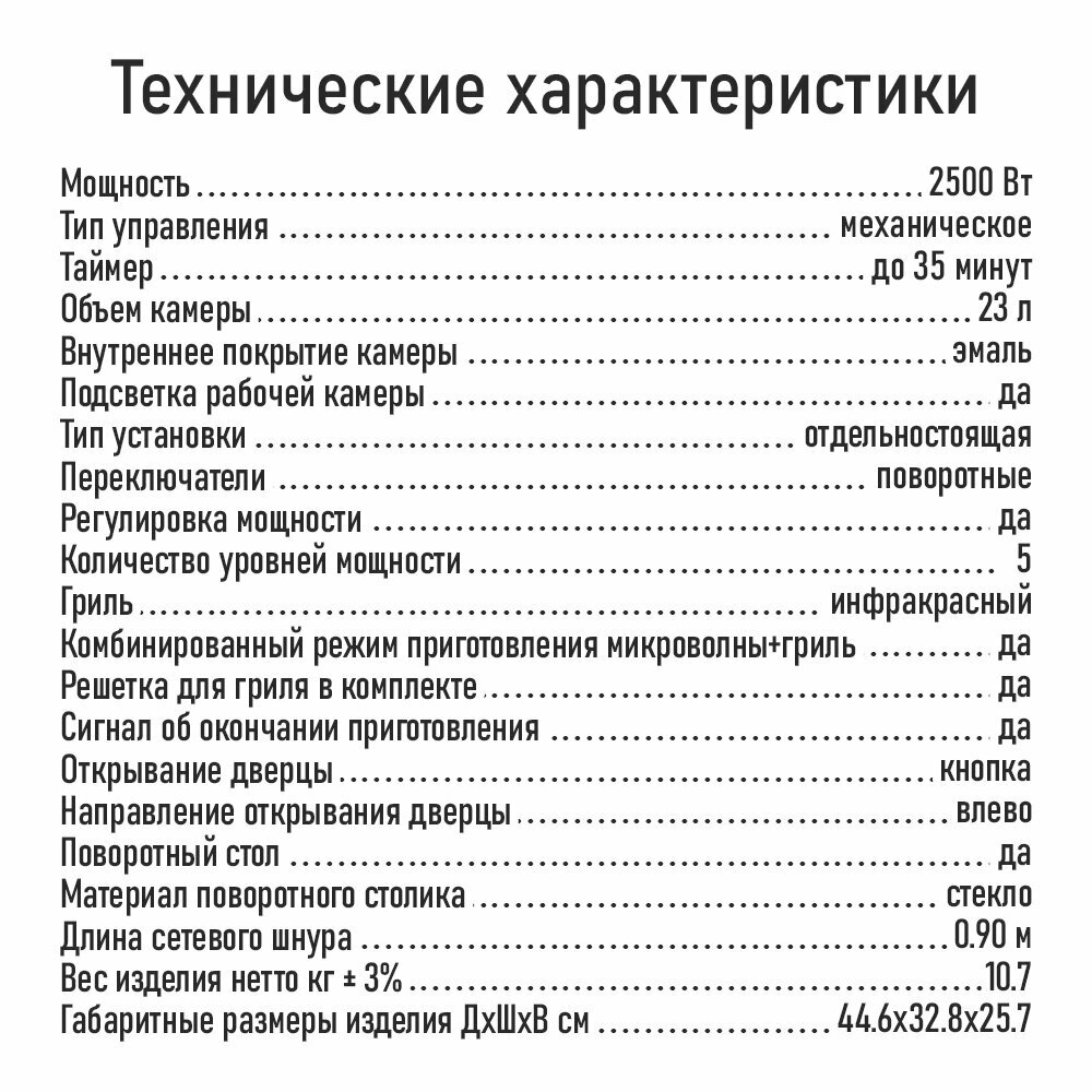 | Мощность микроволн | 2500 Вт |