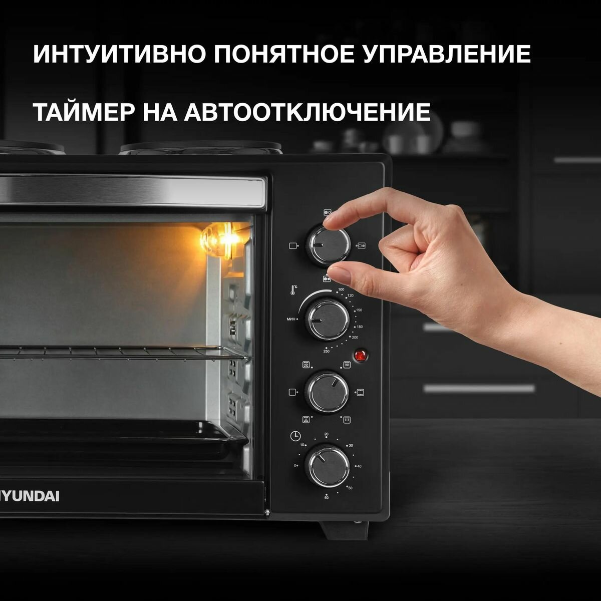 Мини-печь Hyundai "MIO-HY099", конвекция, 2 конфорки, 45л, чёрная