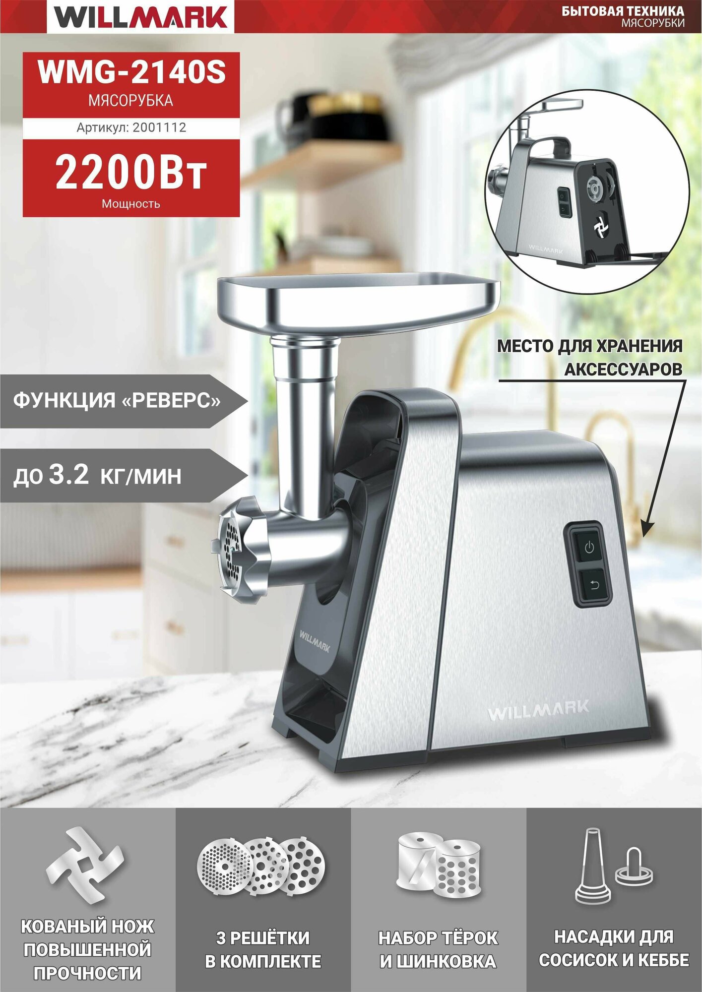 Мясорубка WILLMARK WMG-2140S 2200Вт интересное: