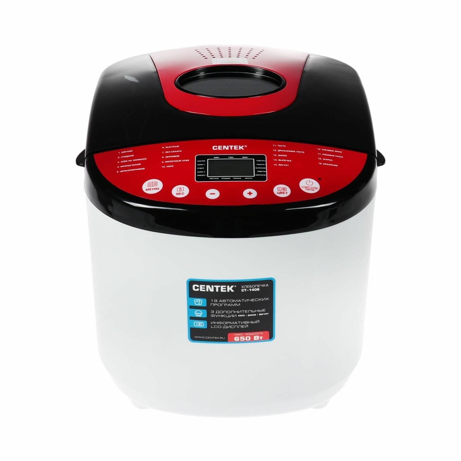CENTEK Хлебопечка CENTEK CT-1406 бело -красный интересное: