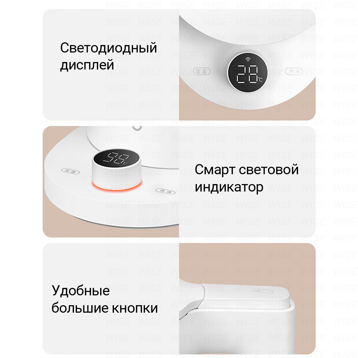 | Особенности | бесшумное закипание / двойные стенки / дисплей / индикация включения / сенсорное управление |