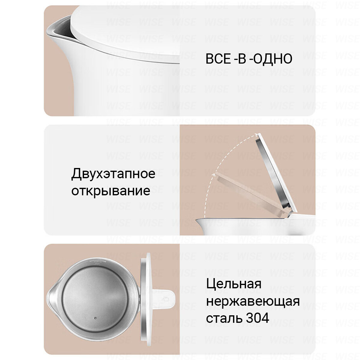 | Безопасность | блокировка включения без воды / отключение при снятии с подставки |